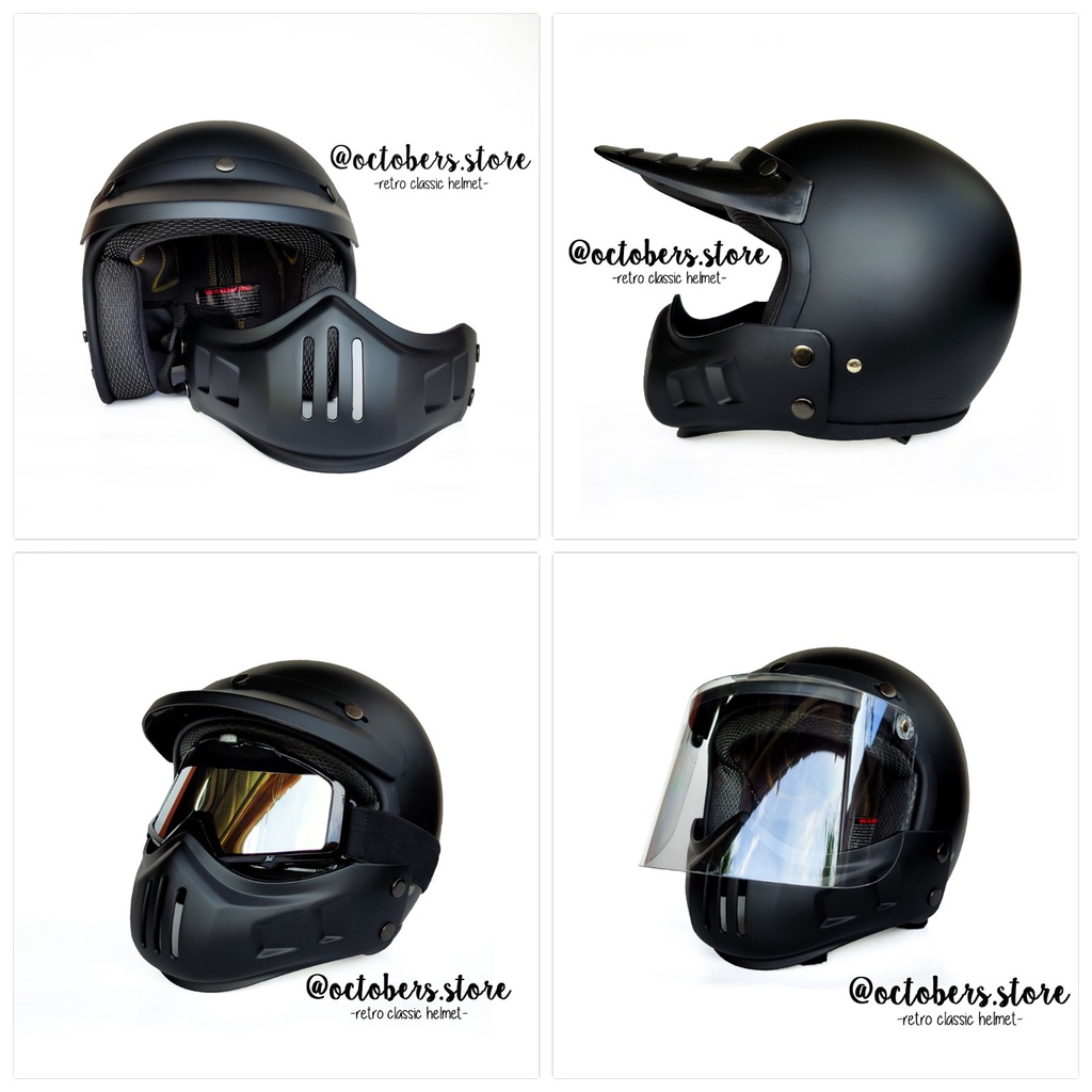 Alasan kenapa harus beli HELM CAKIL MODULAR HITAM DOFF (HALF FACE / FULL FACE) - HELM RETRO - HELM BOGO sekarang