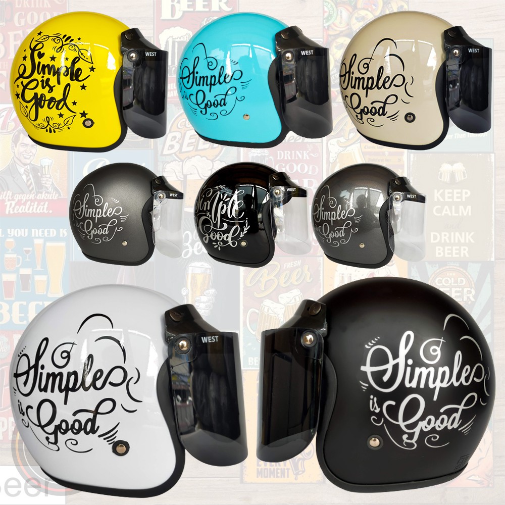 HELM BOGO HELM BOGO RETRO MOTIF SIMPLE GOOD EVERYBODY KACA DATAR UNTUK PRIA DAN WANITA DEWASA COD
