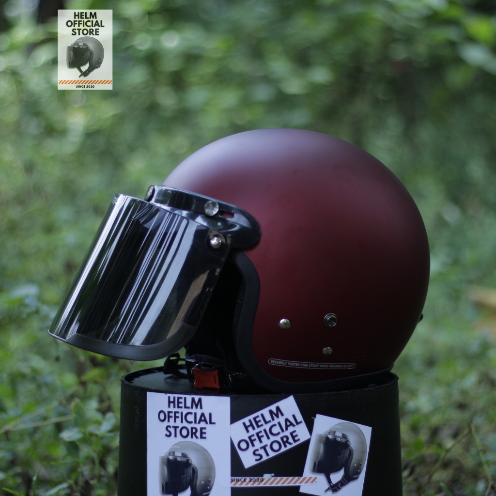 Helm Bogo Retro Motor Sni Bisa Cod Warna Maroon Doff