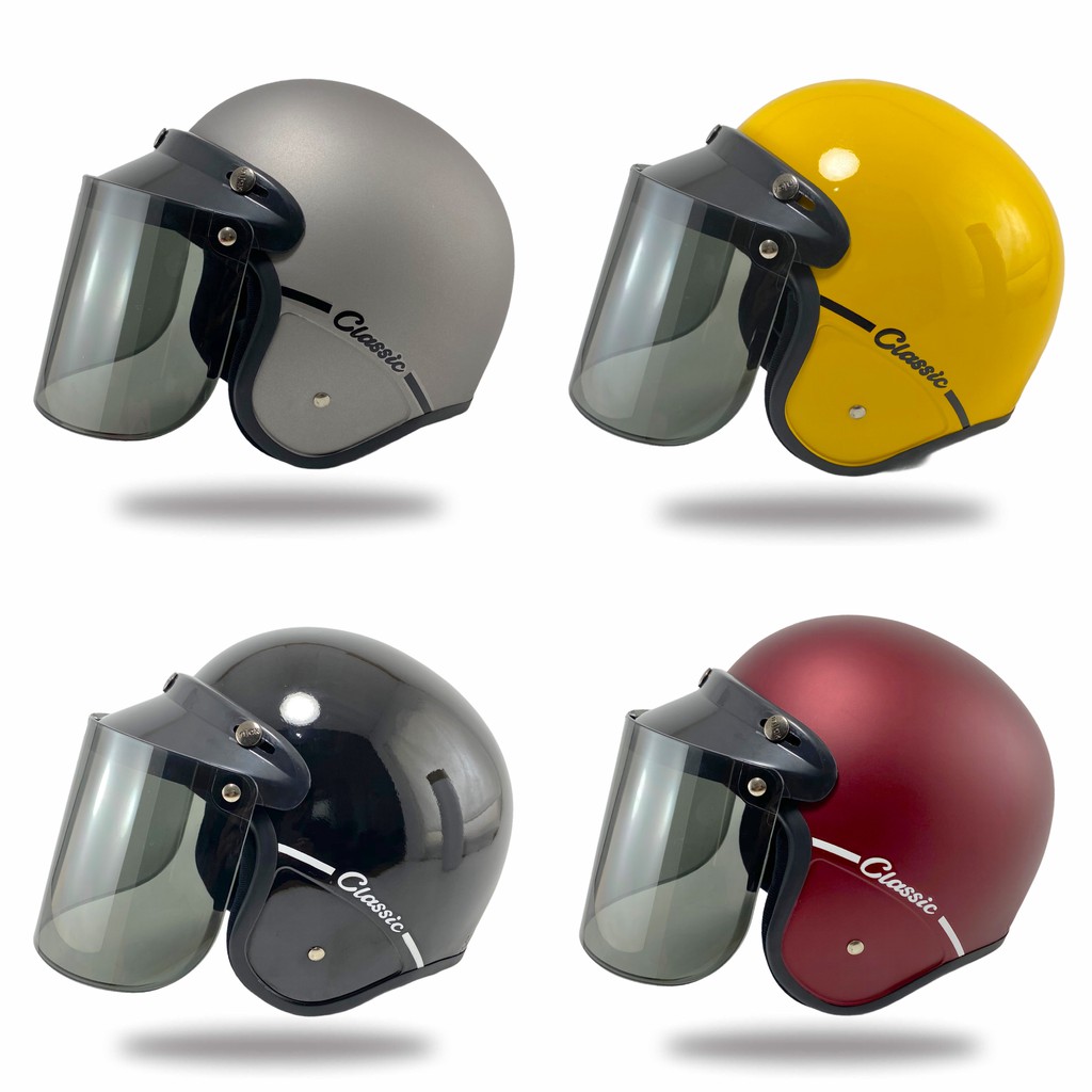 Helm Bogo Dewasa Classic Polos Garis Kaca Datar dan Cembung