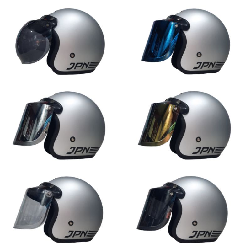 Helm Bogo Retro JPN ARC Silver Doff Kaca Visor Flat Datar Cembung Topi