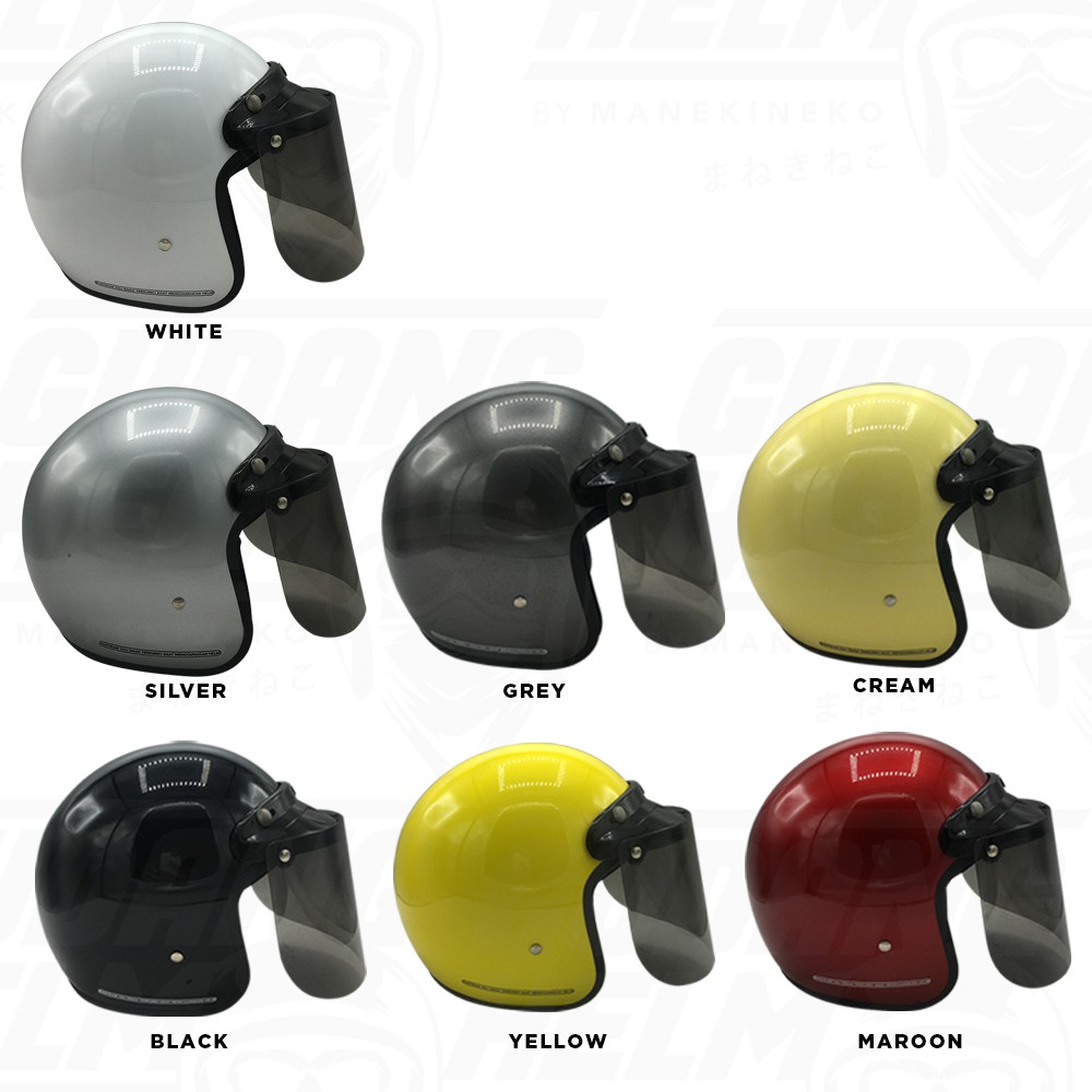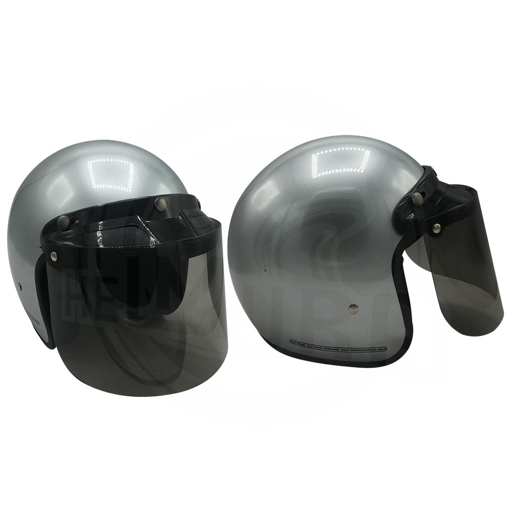 Helm Bogo Dewasa SNI Polos Pria Wanita Full Leher Kaca Datar Retro Keren Murah