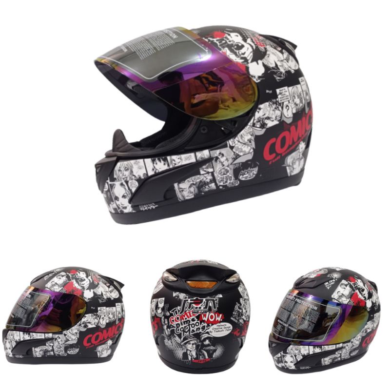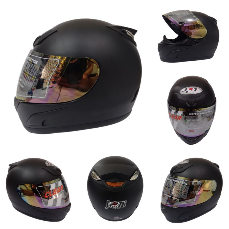 Helm Full Face Brand JPN Jap Style Racing Sport MotoGP Tanduk Hitam Doff Matt Black Visor Rainbow