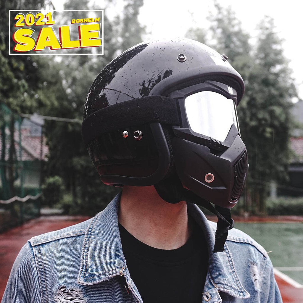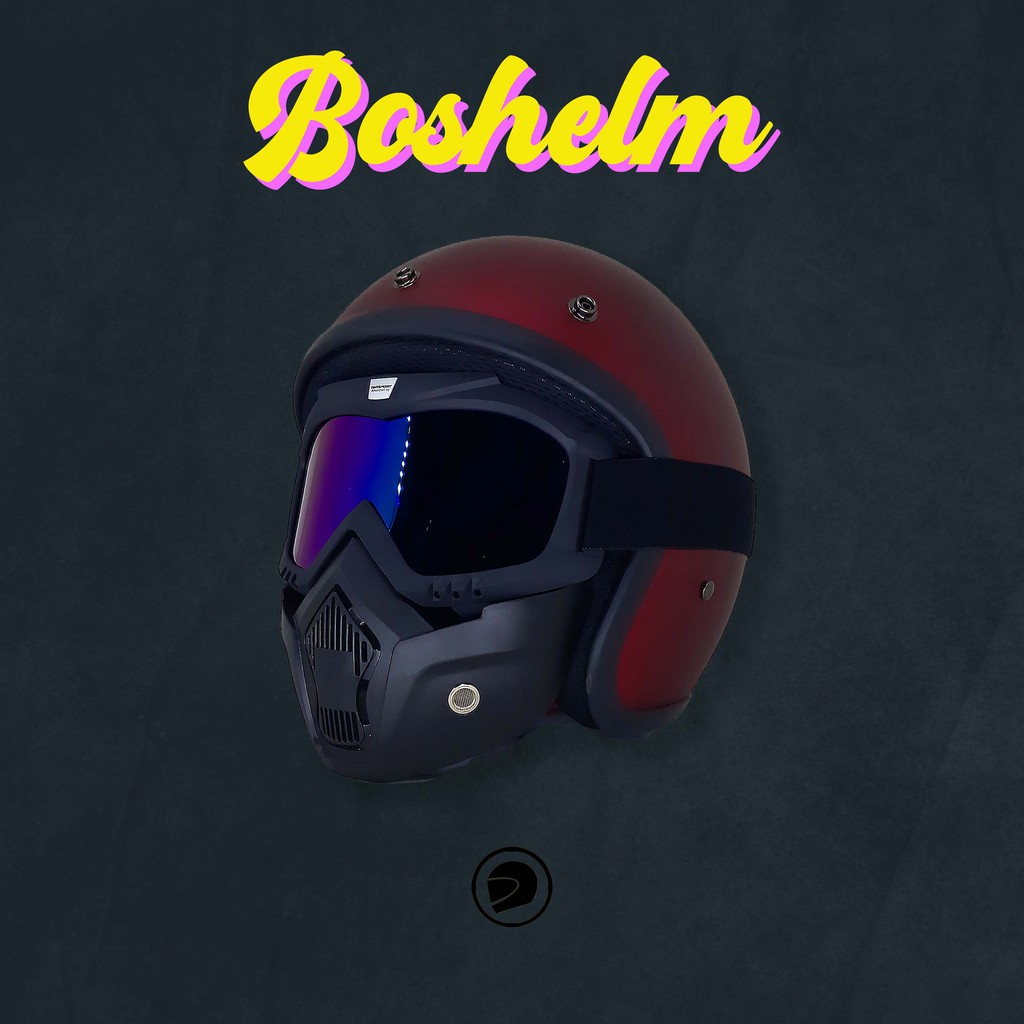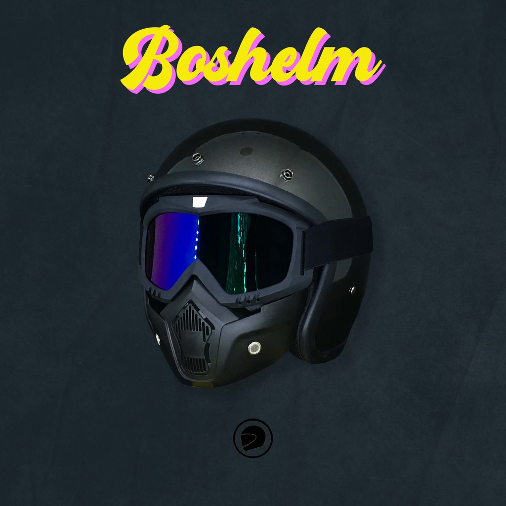 BOSHELM Helm Retro Goggle Mask Helm Bogo Helm Half Face Helm Goggle Mask