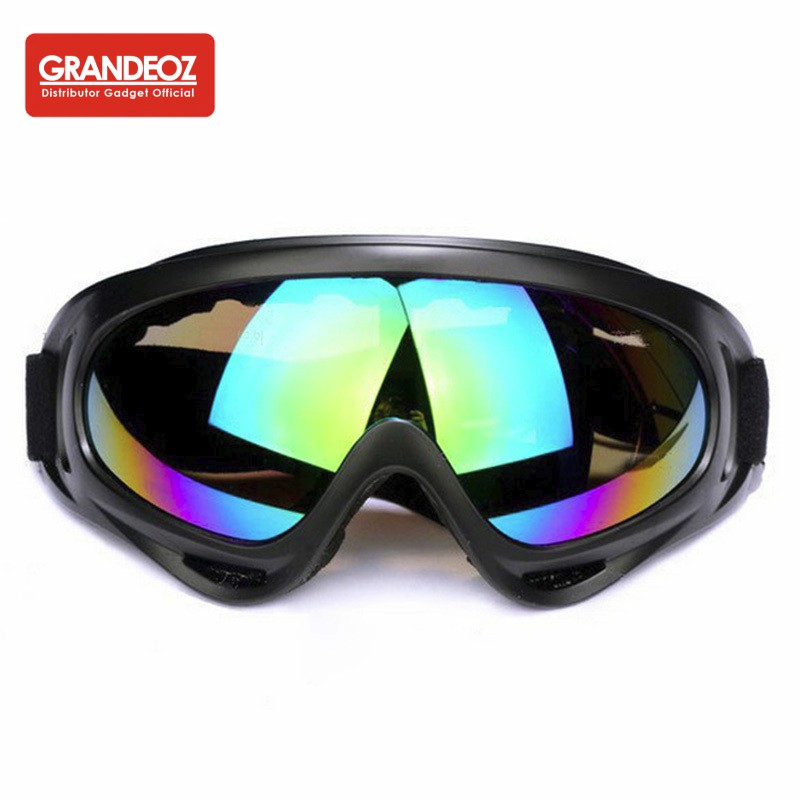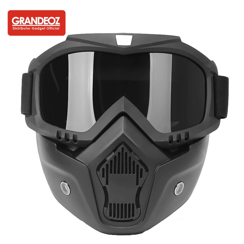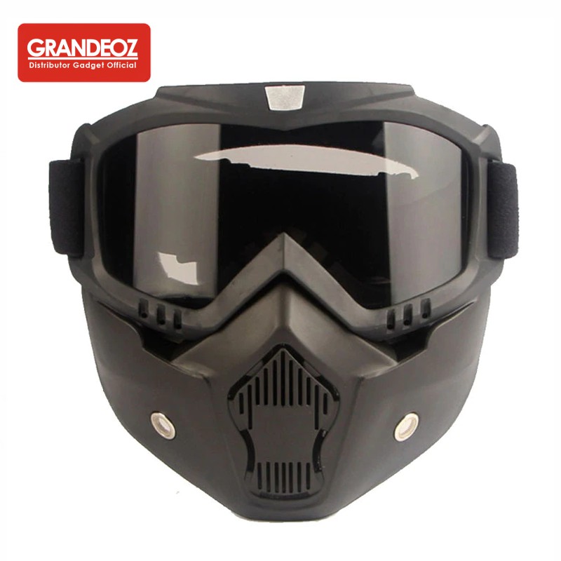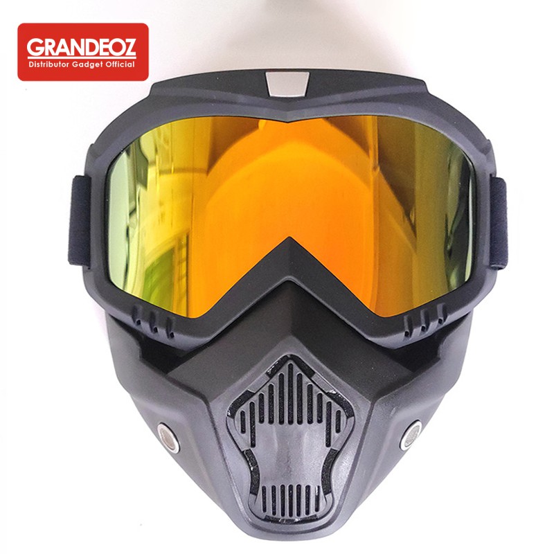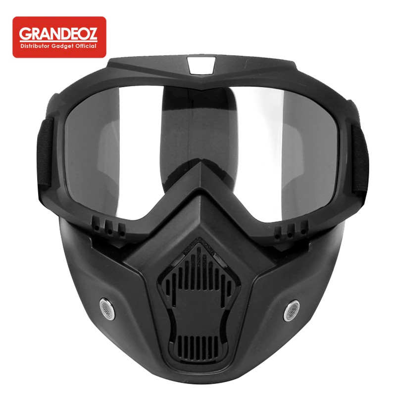 Goggles Kacamata + Masker Full Face Helem Goggle Mask Helm Gun Ski Motor Cross Topeng Kaca Mata Trail Air soft Motocross Bogo Biru Transparant Gold Bening Silver Hitam Putih Pelangi