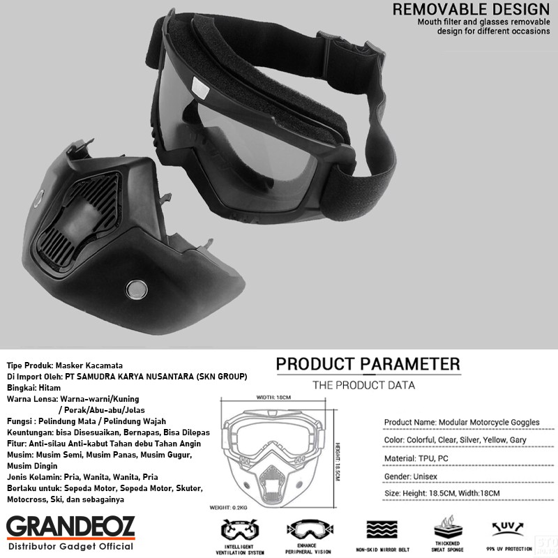 Alasan kenapa harus beli Goggles Kacamata + Masker Full Face Helem Goggle Mask Helm Gun Ski Motor Cross Topeng Kaca Mata Trail Air soft Motocross Bogo Biru Transparant Gold Bening Silver Hitam Putih Pelangi sekarang