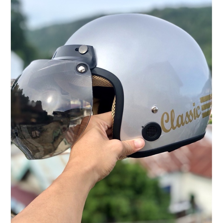 Helm Bogo Retro Dewasa Polos Pria Wanita Cowok Cewek Motor Sni Termurah Kaca Datar