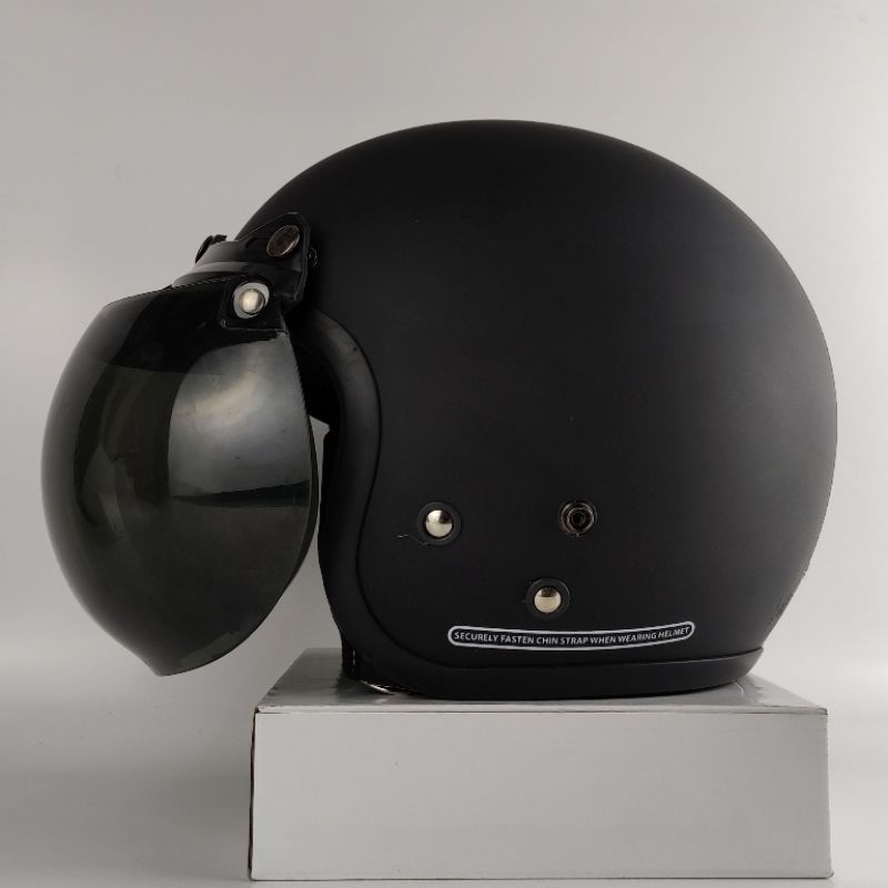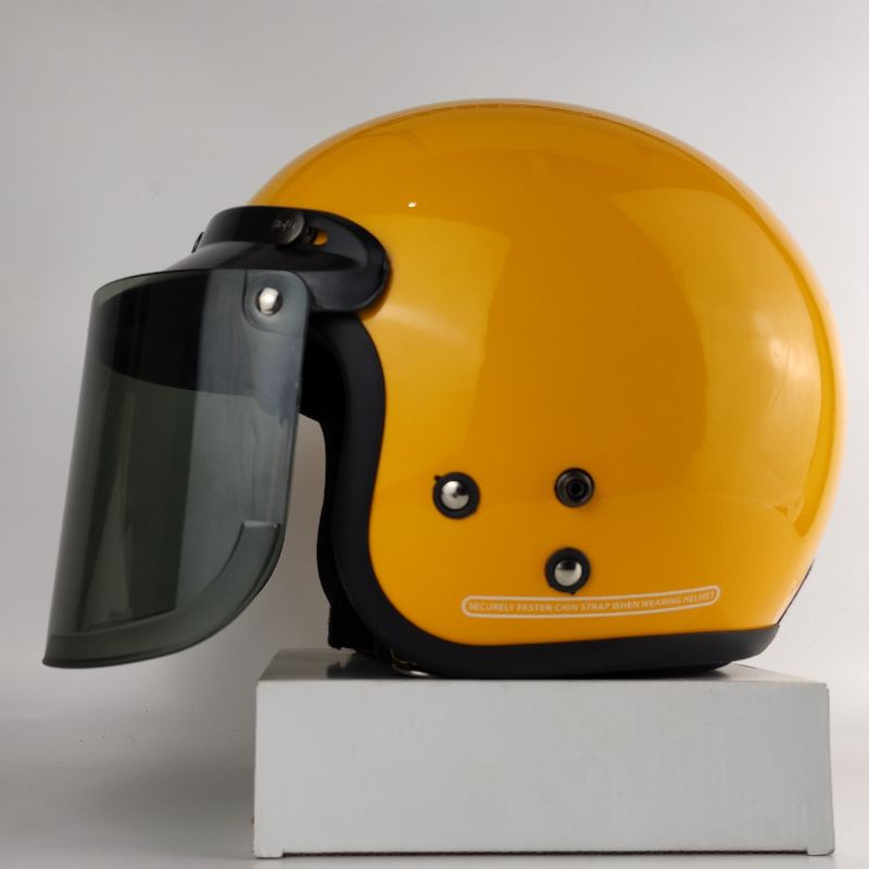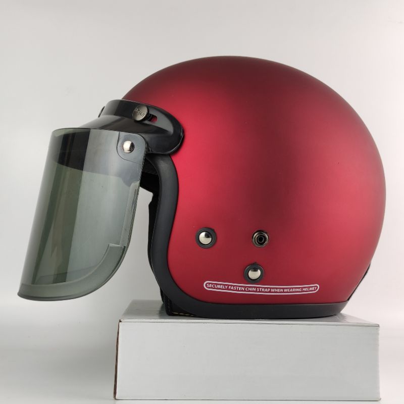 Helm Bogo Retro Dewasa SNI List Classic Polos Kaca Cembung Full Leher