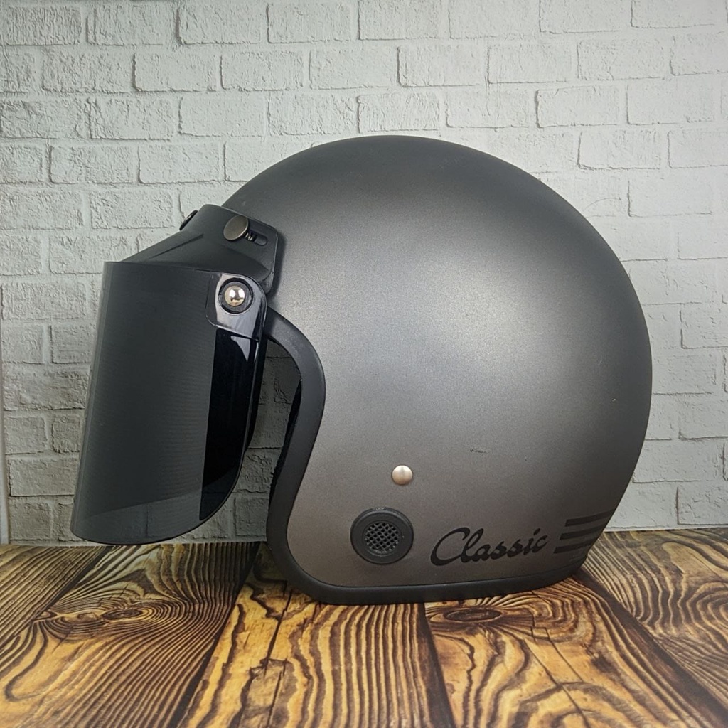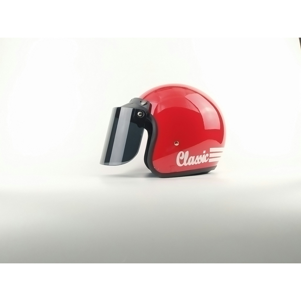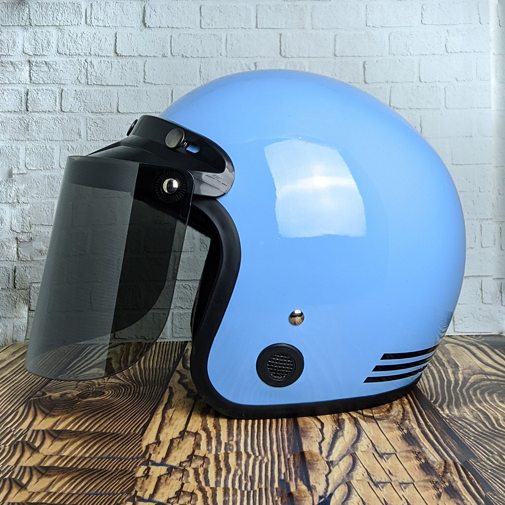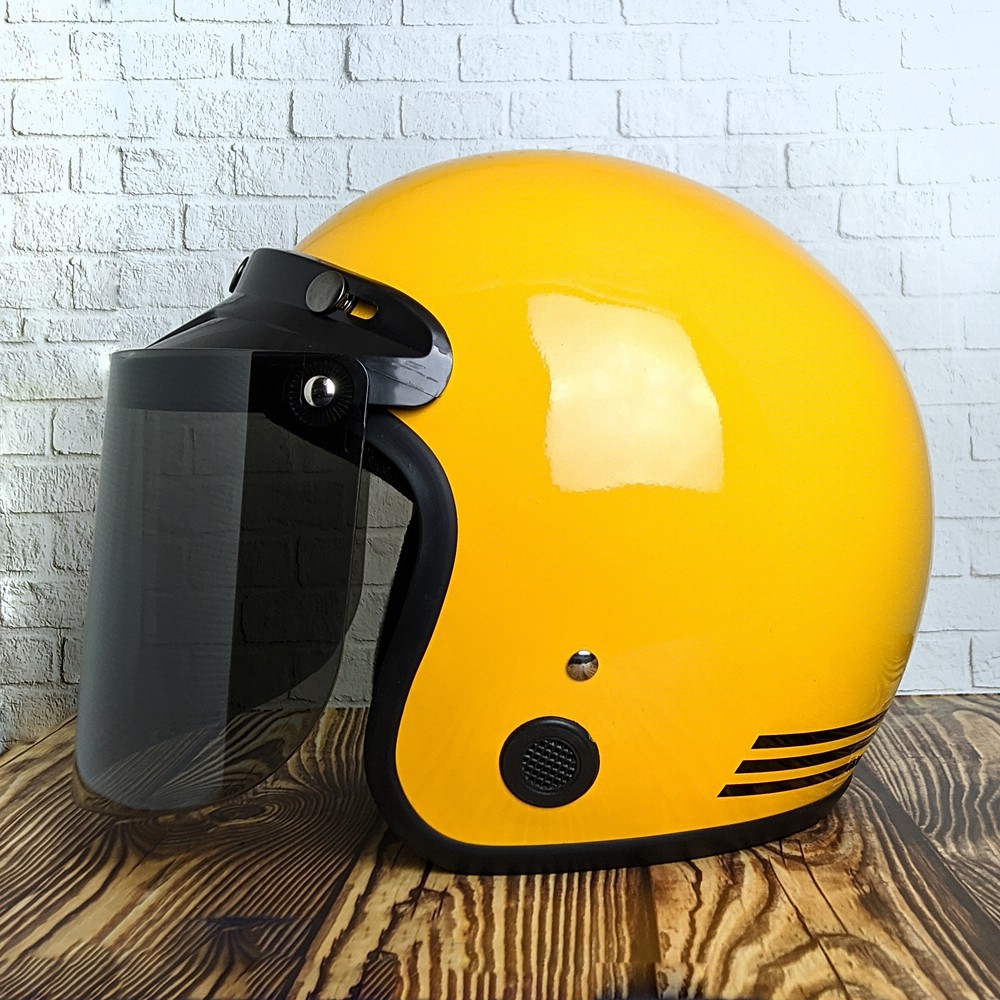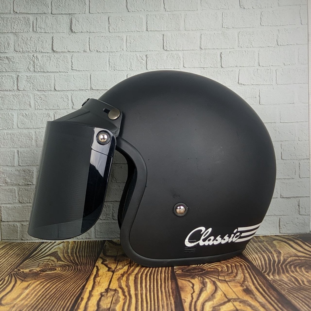 Helm Bogo polos tiga garis classic kaca datar flat injak free packing bubble