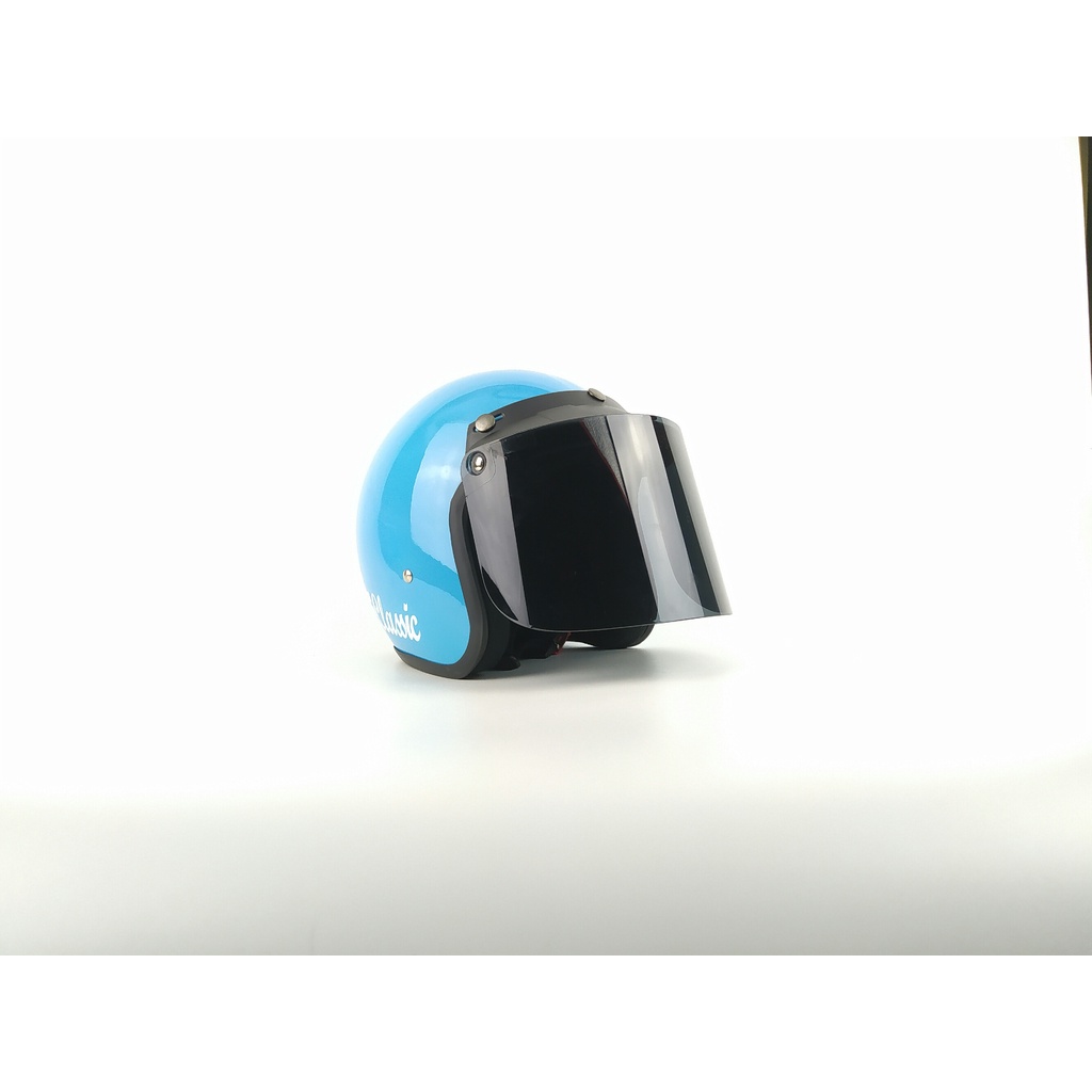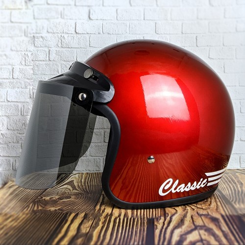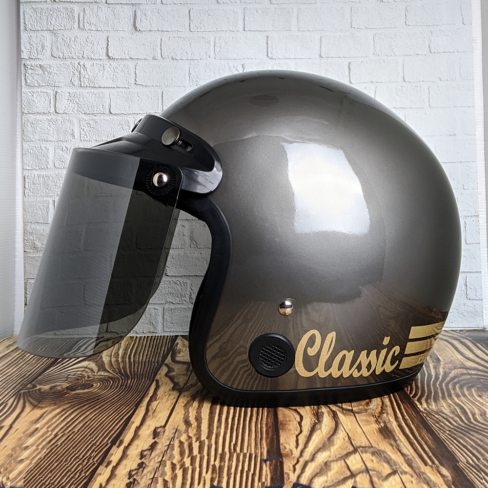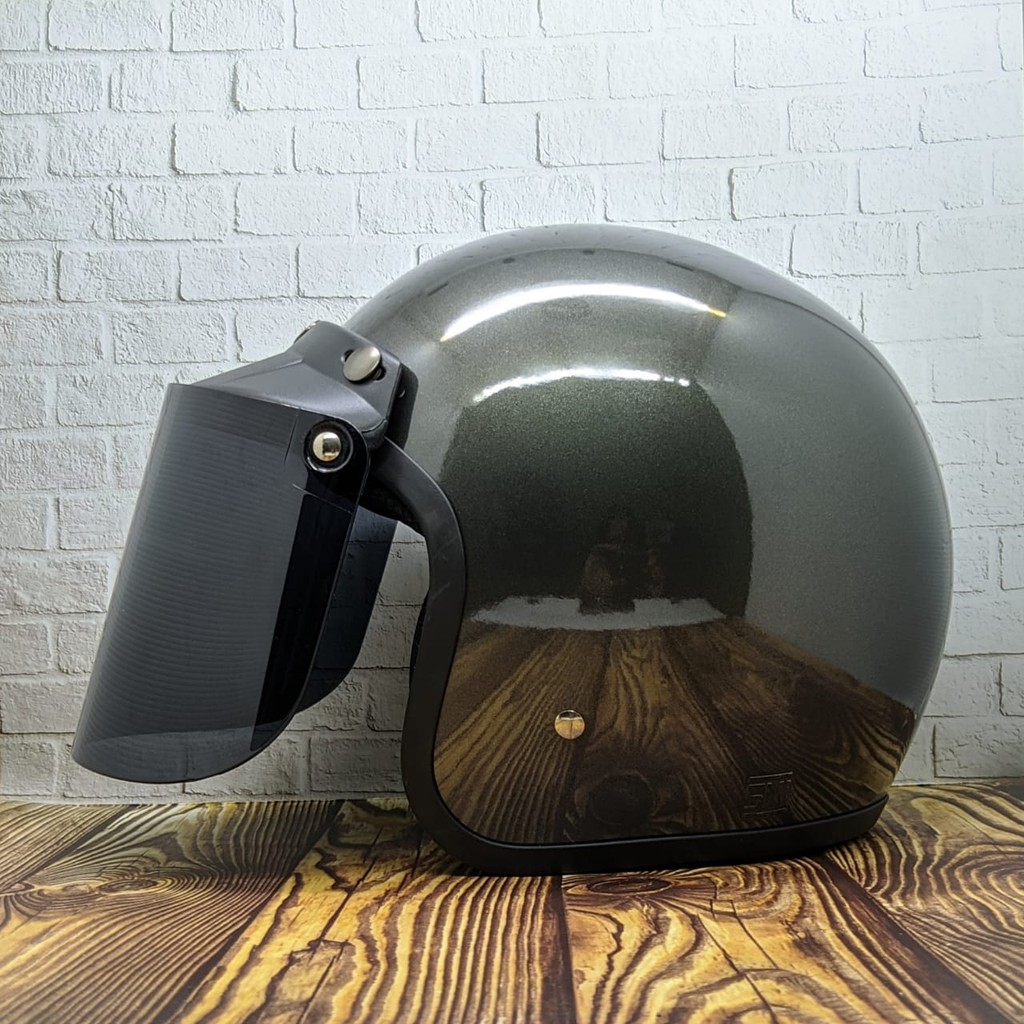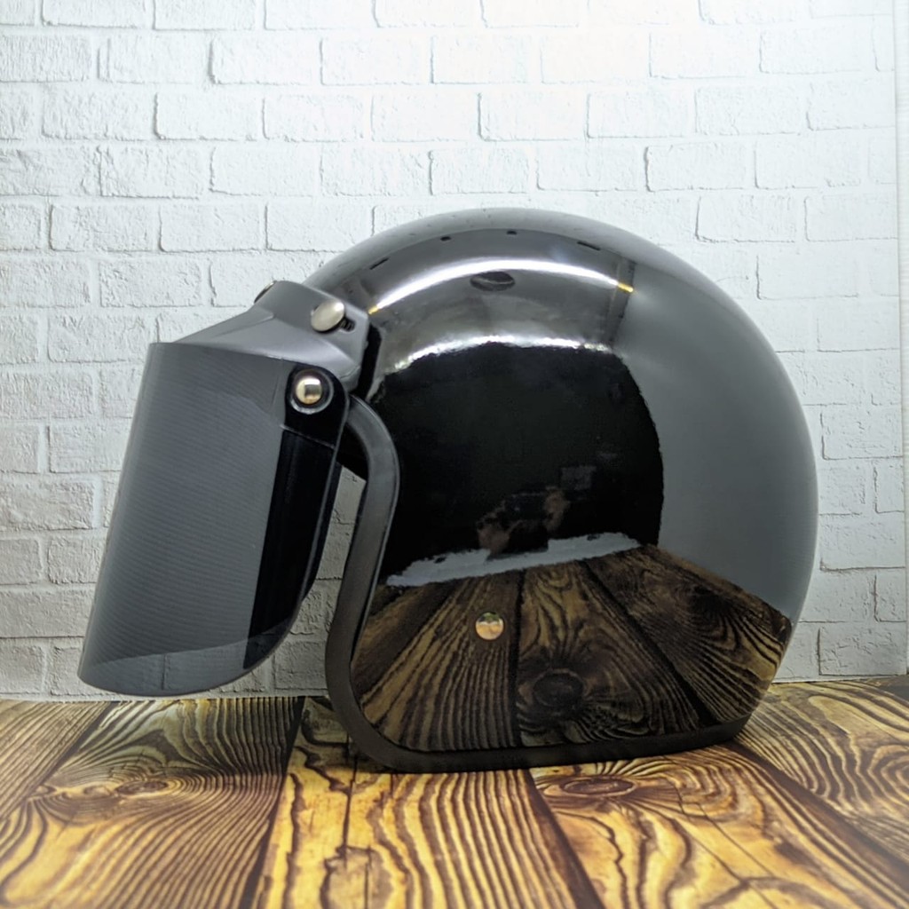 Helm Bogo polos tiga garis classic kaca datar flat injak free packing bubble
