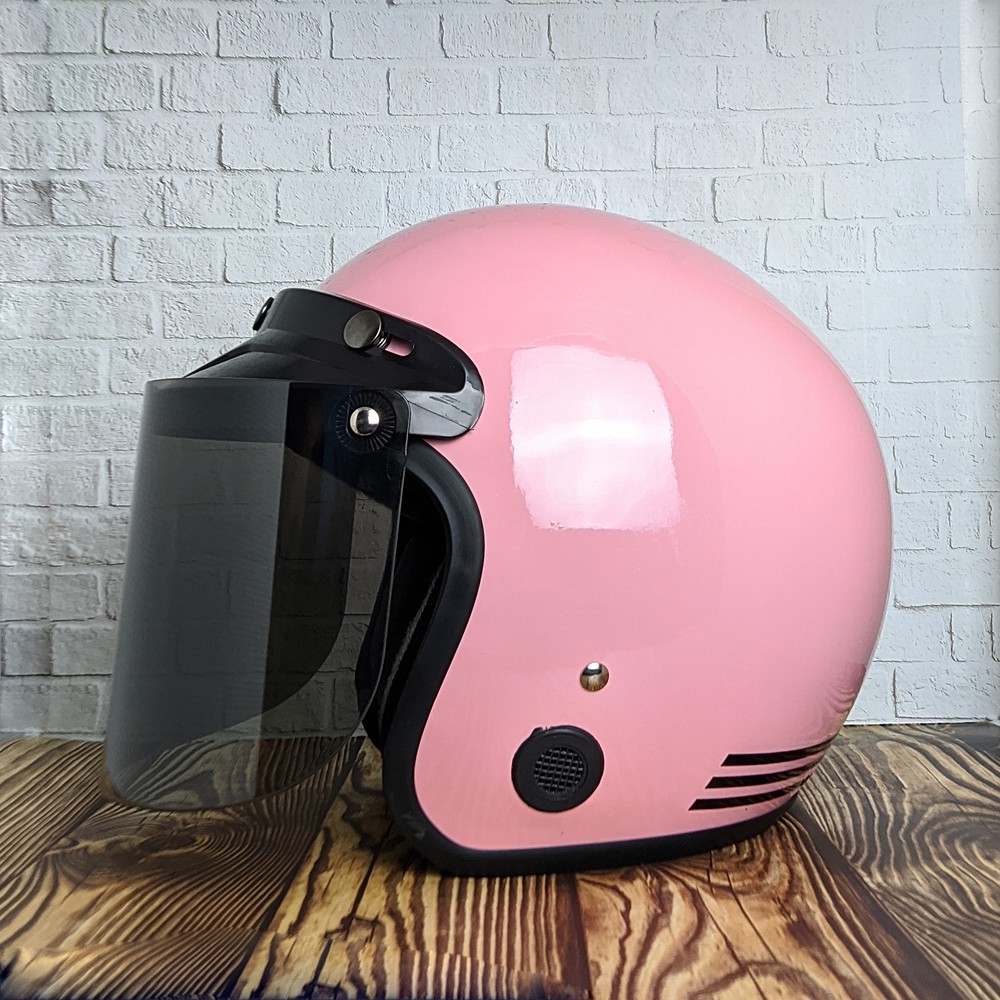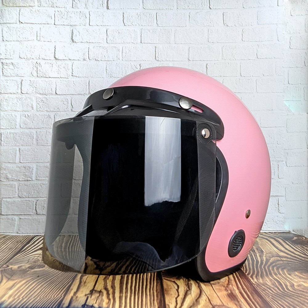 Helm Bogo Dewasa Wanita Kaca Datar Classic Pastel Hijab Retro Polos