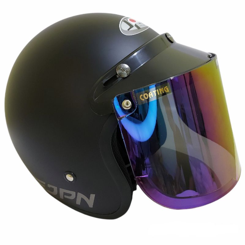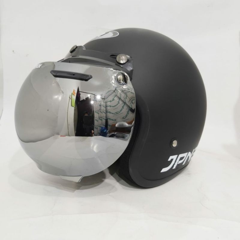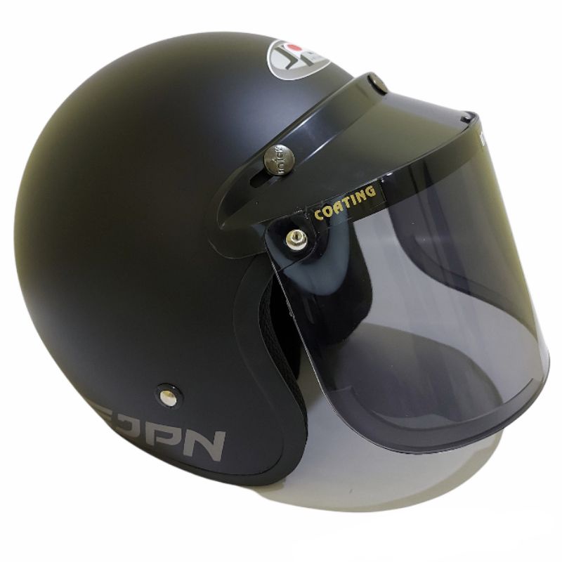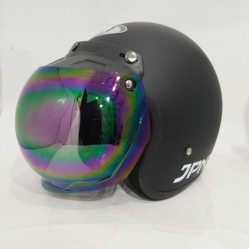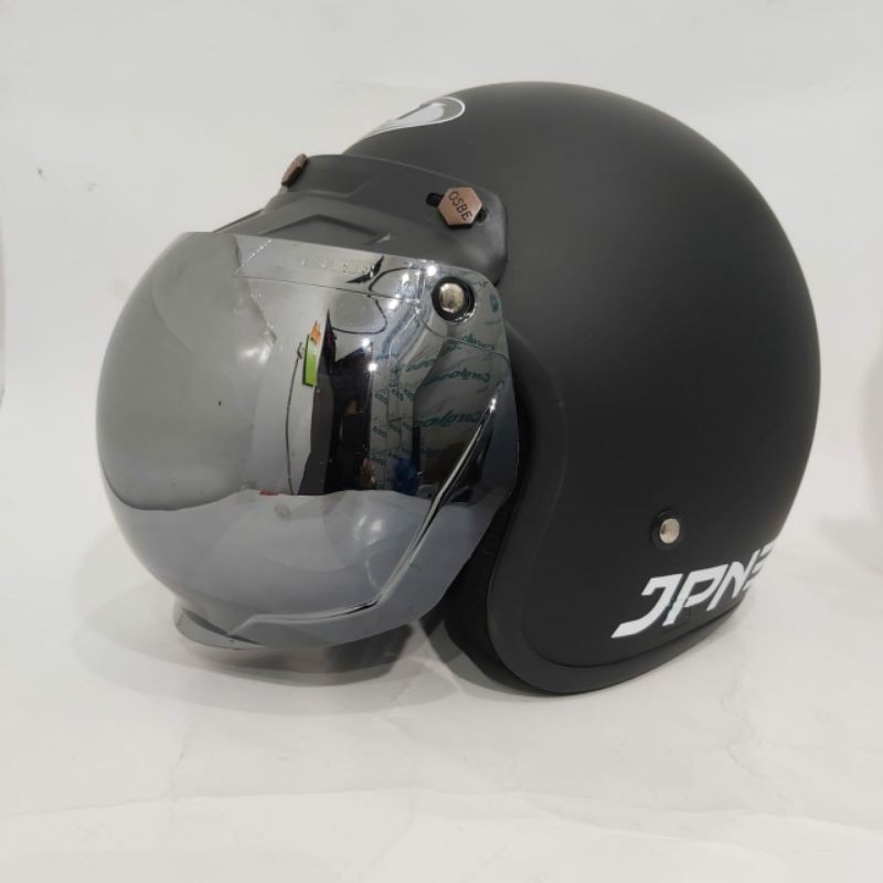 Helm bogo jpn retro arc Hitam Doff kaca flat visor