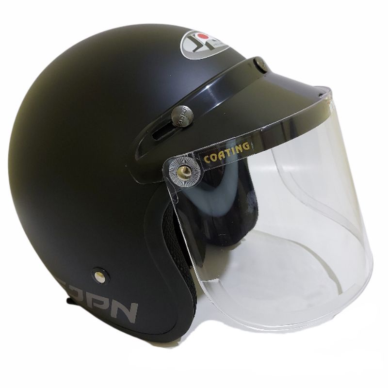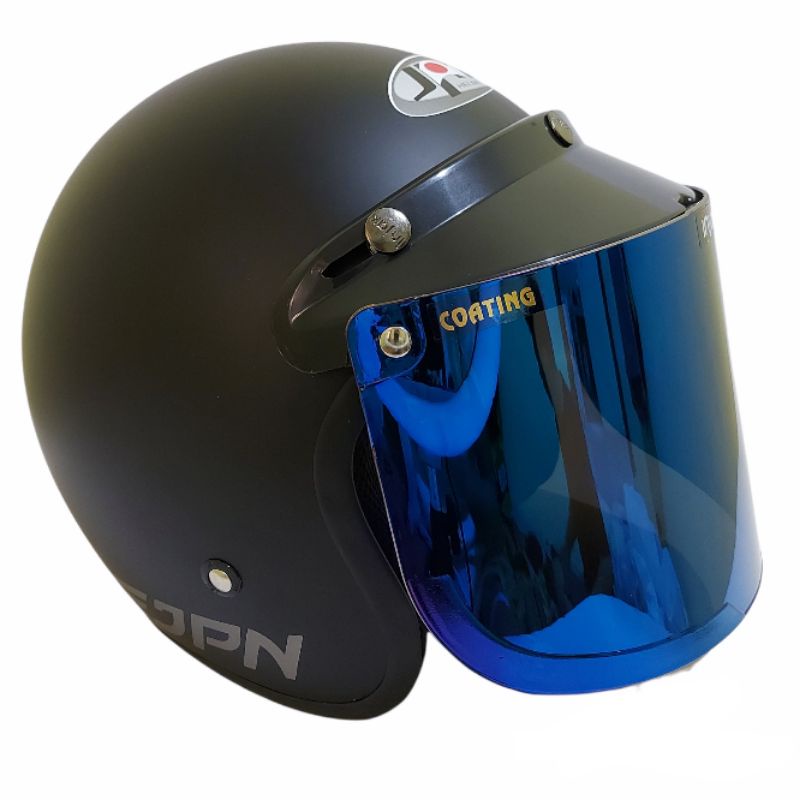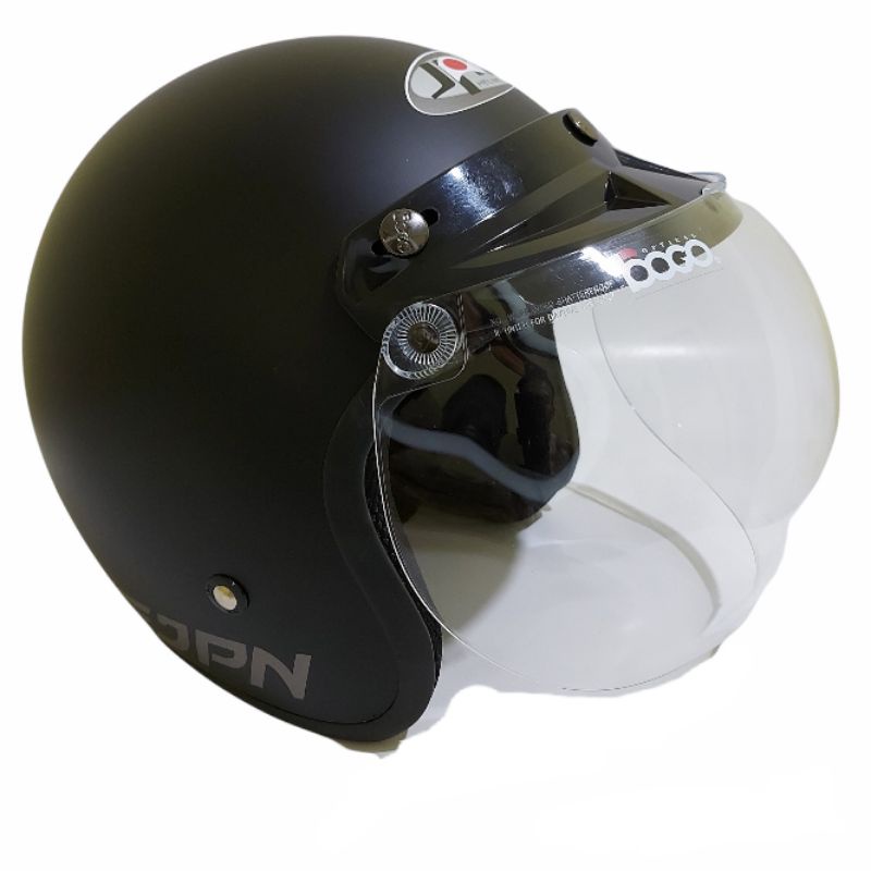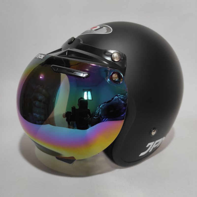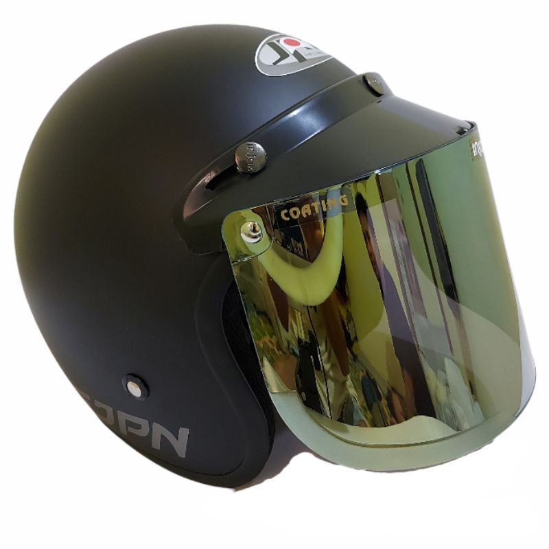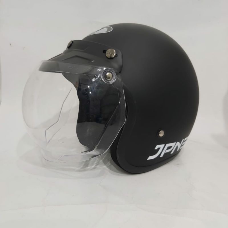 Helm bogo jpn retro arc Hitam Doff kaca flat visor