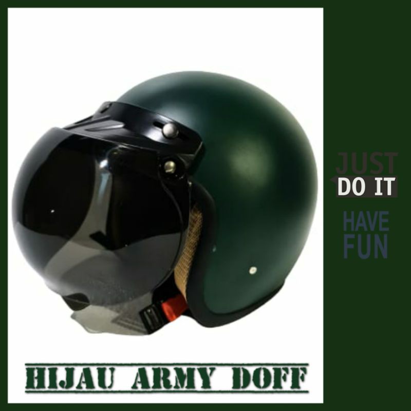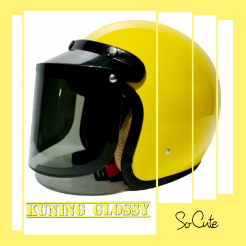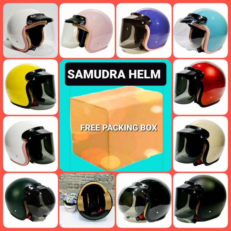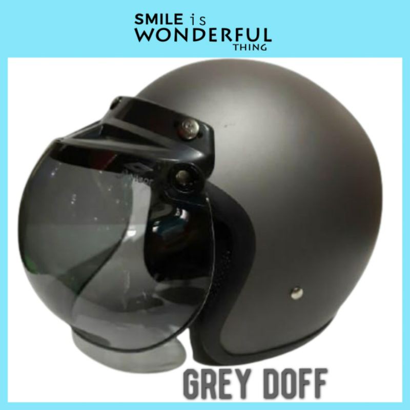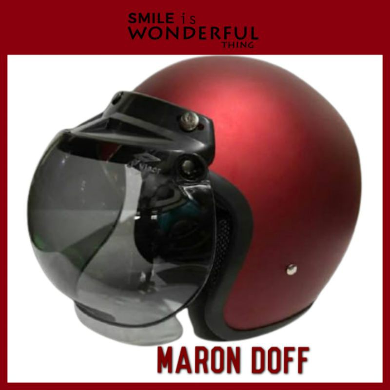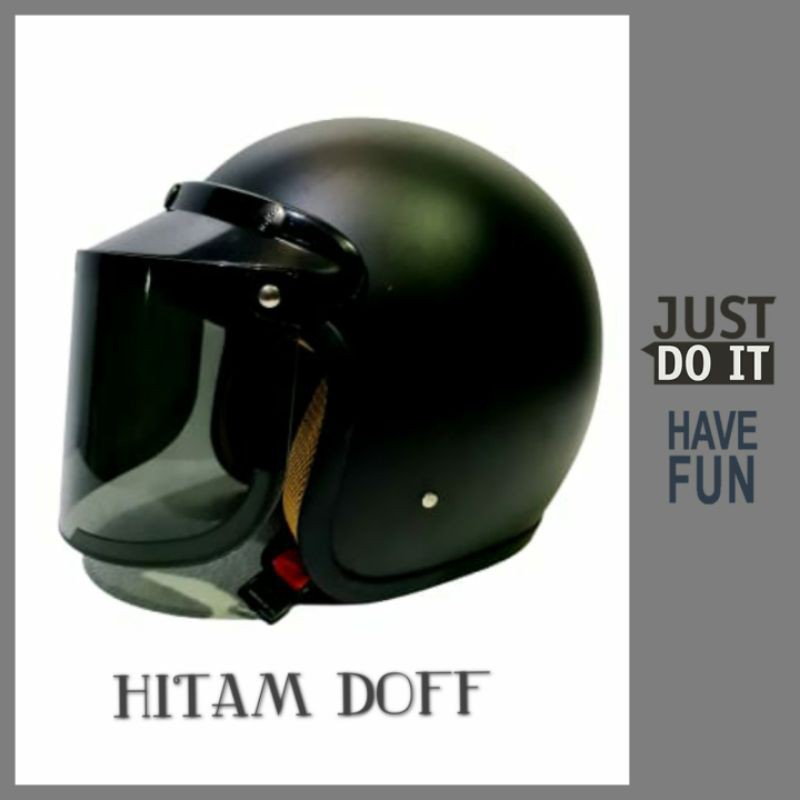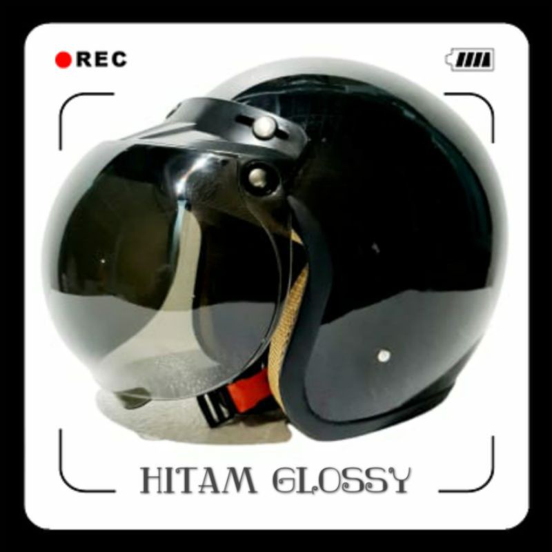HELM BOGO DEWASA POLOS GARIS CLASSIC + KACA CEMBUNG/DATAR + FREE PACKING BUBBLE WRAP