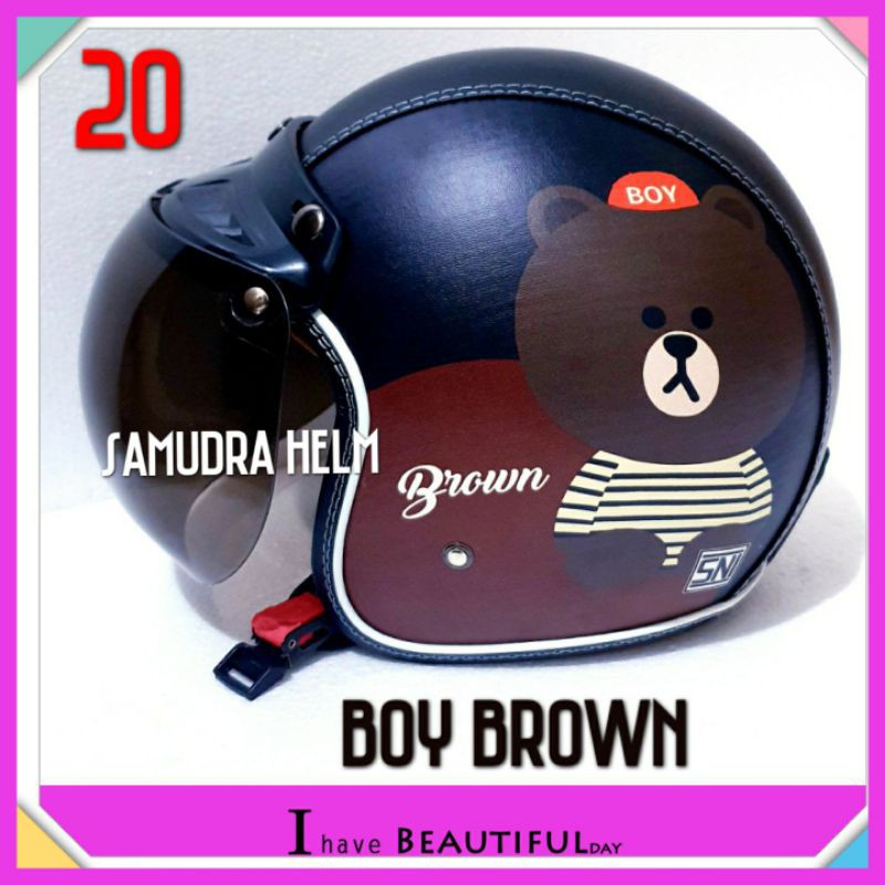 Helm Bogo Retro Dewasa Karakter FULL LEHER Sudah SNI + Variasi Kaca