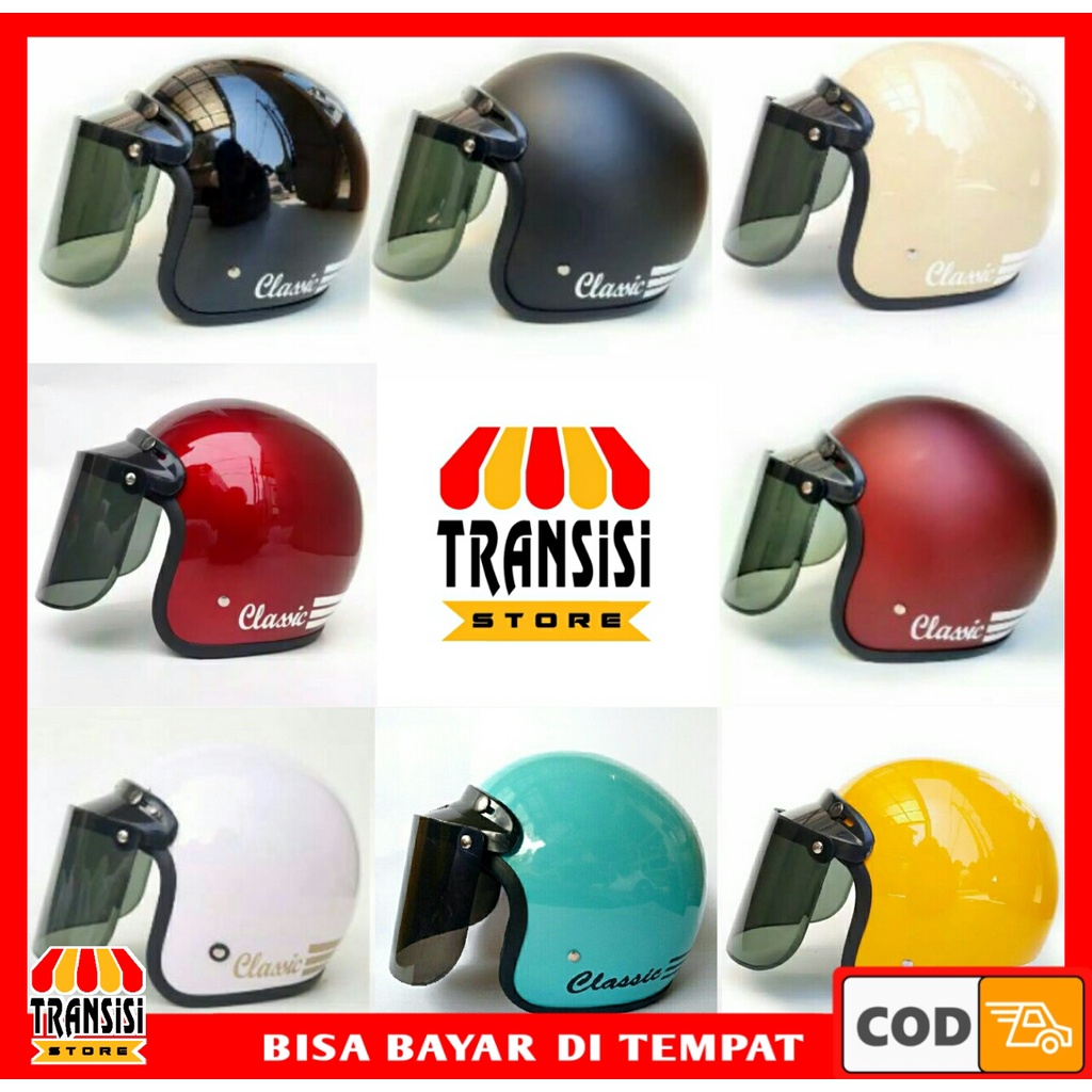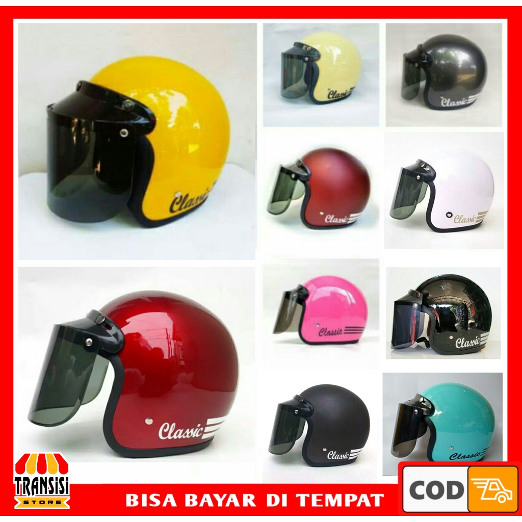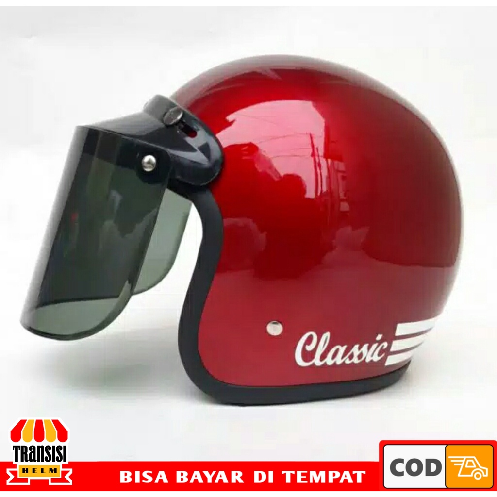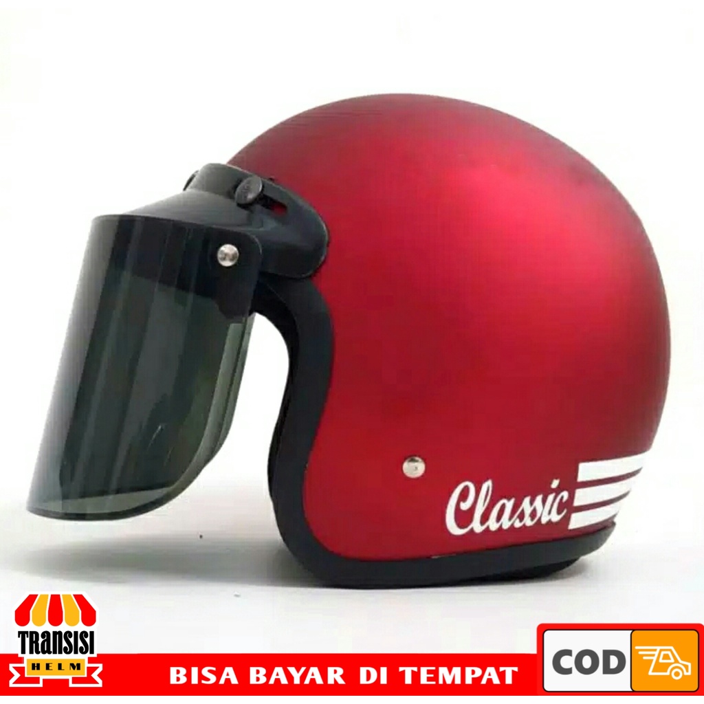 Helm Bogo Retro kaca datar dewasa sni helmet