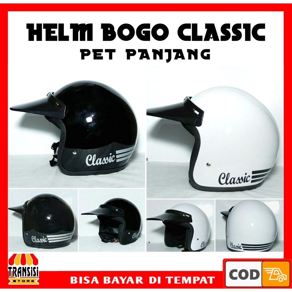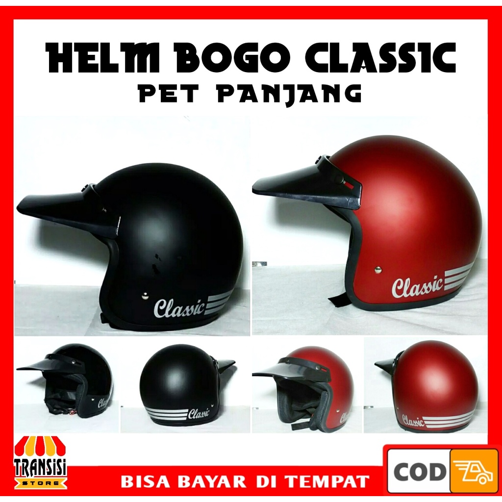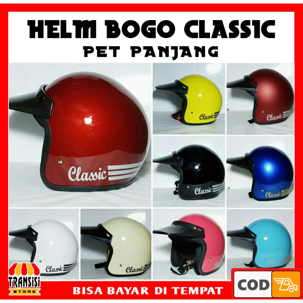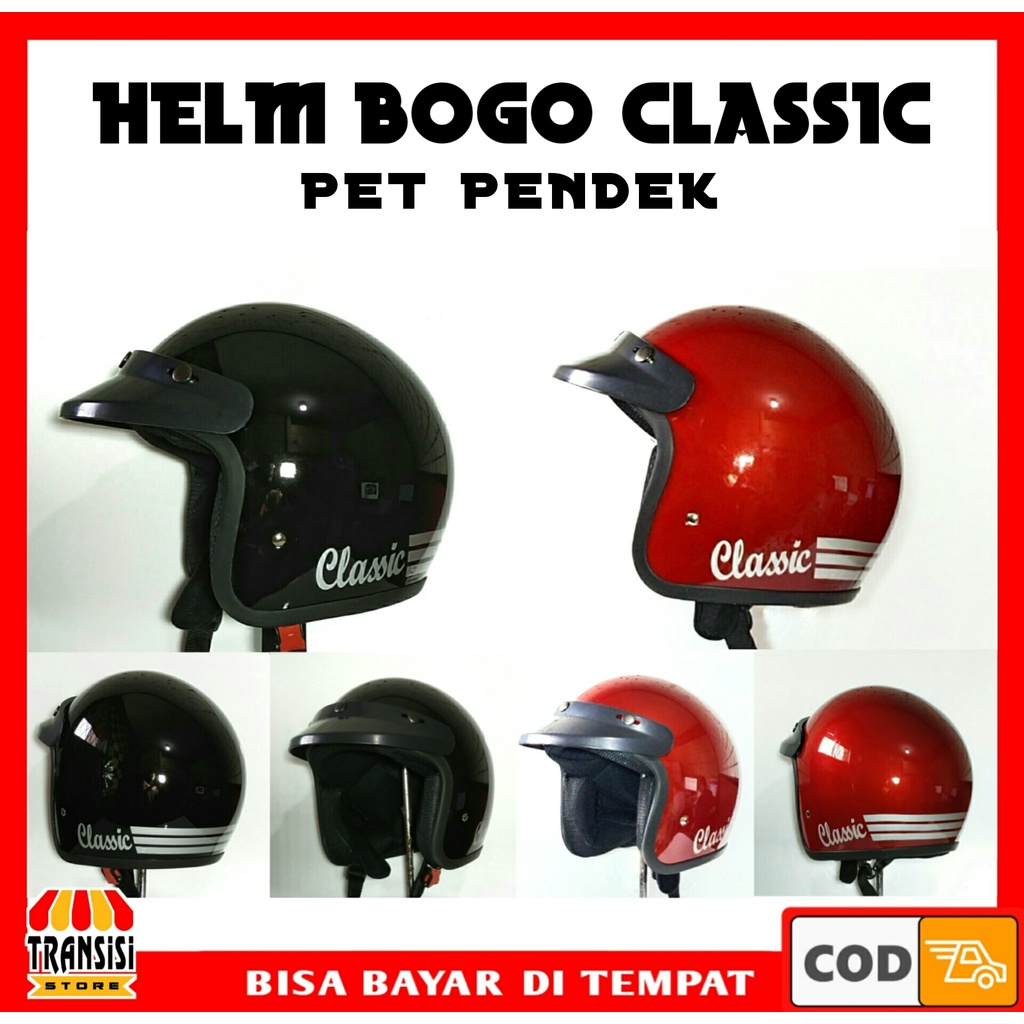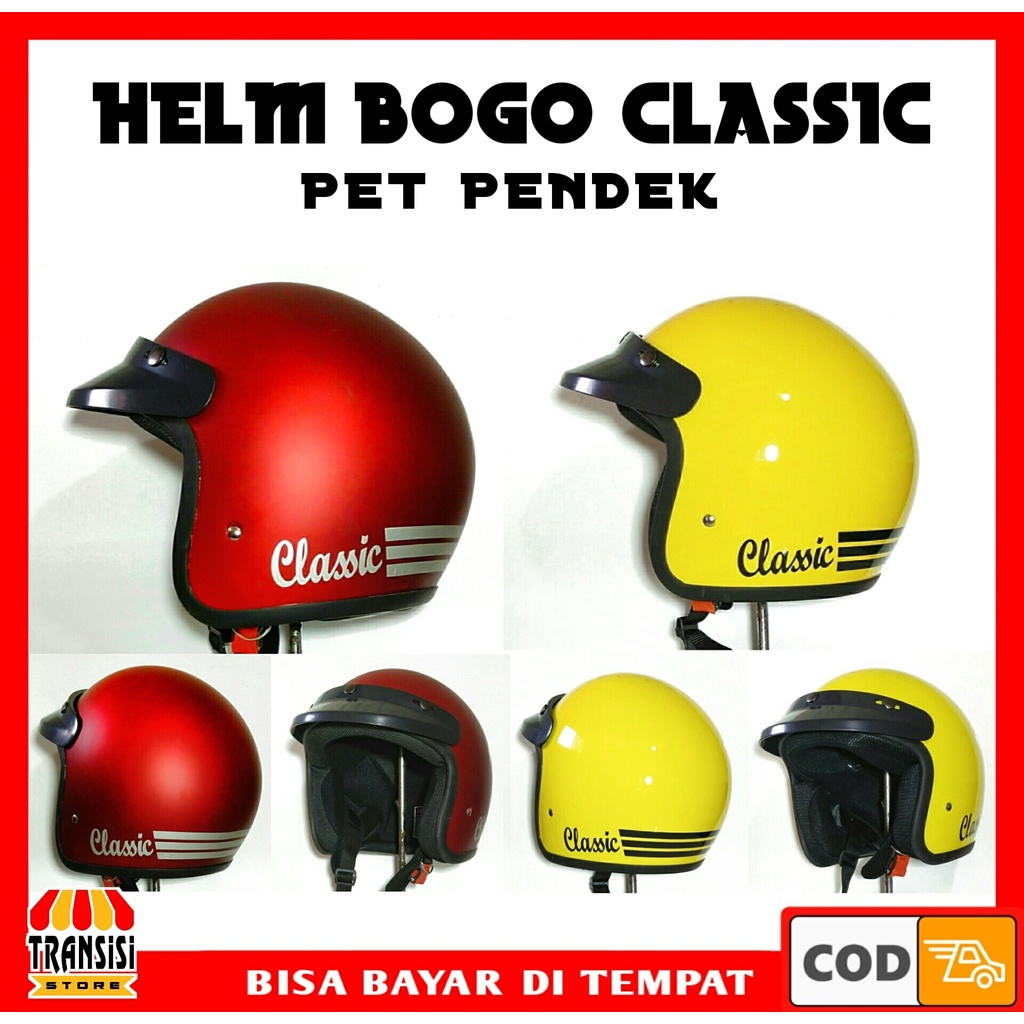 Helm Bogo Retro Wanita Pria Dewasa Classic Clasic Klasik Motor SNI Tanpa Kaca Pet Pendek Full Leher