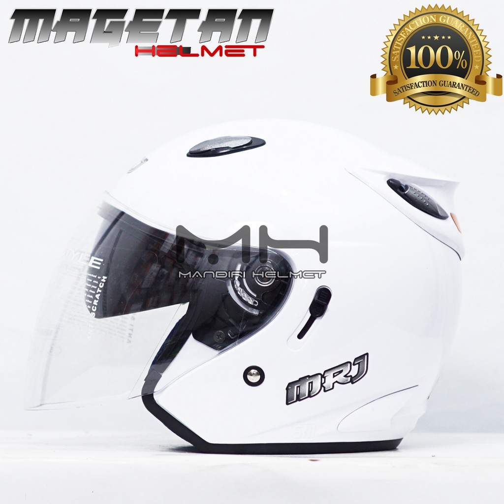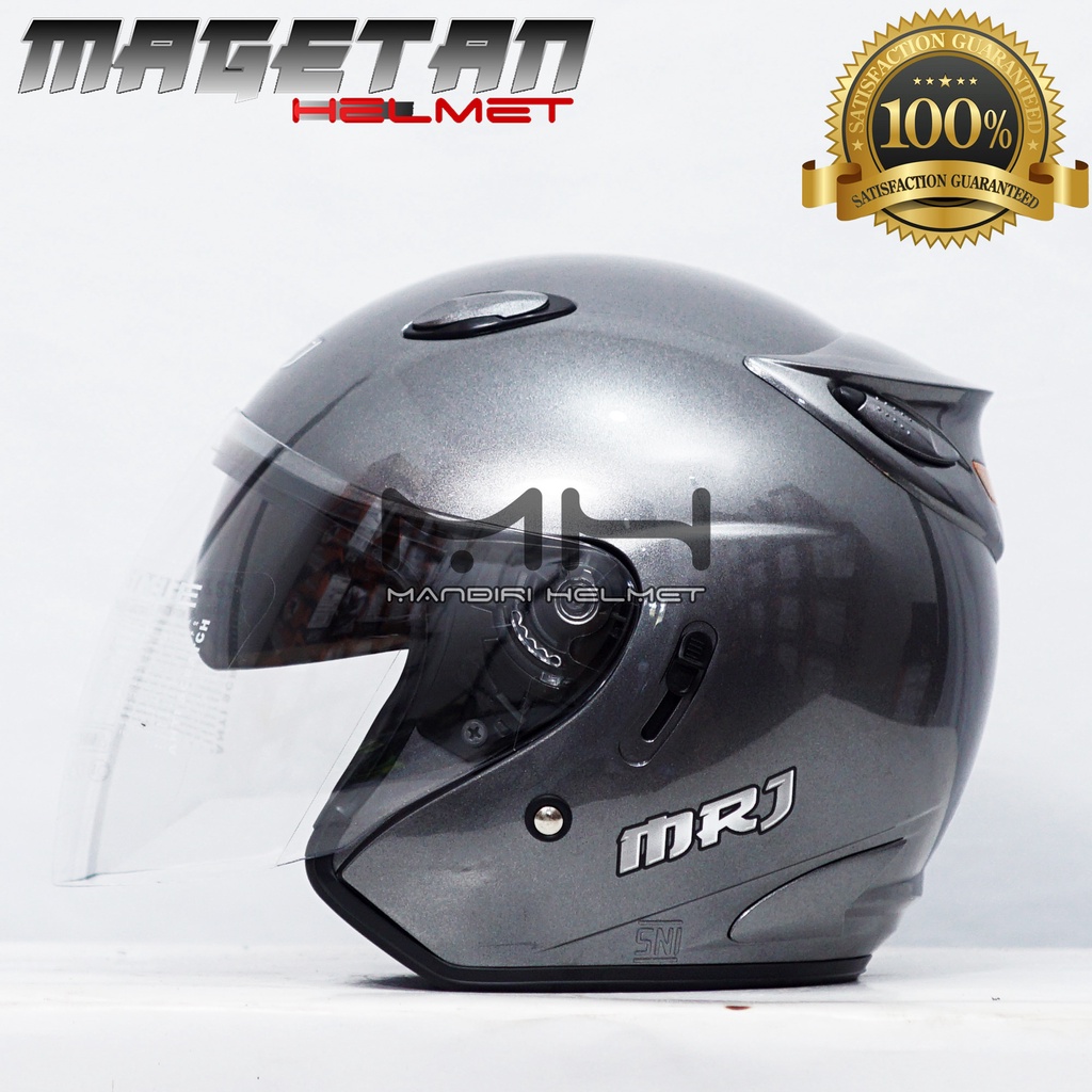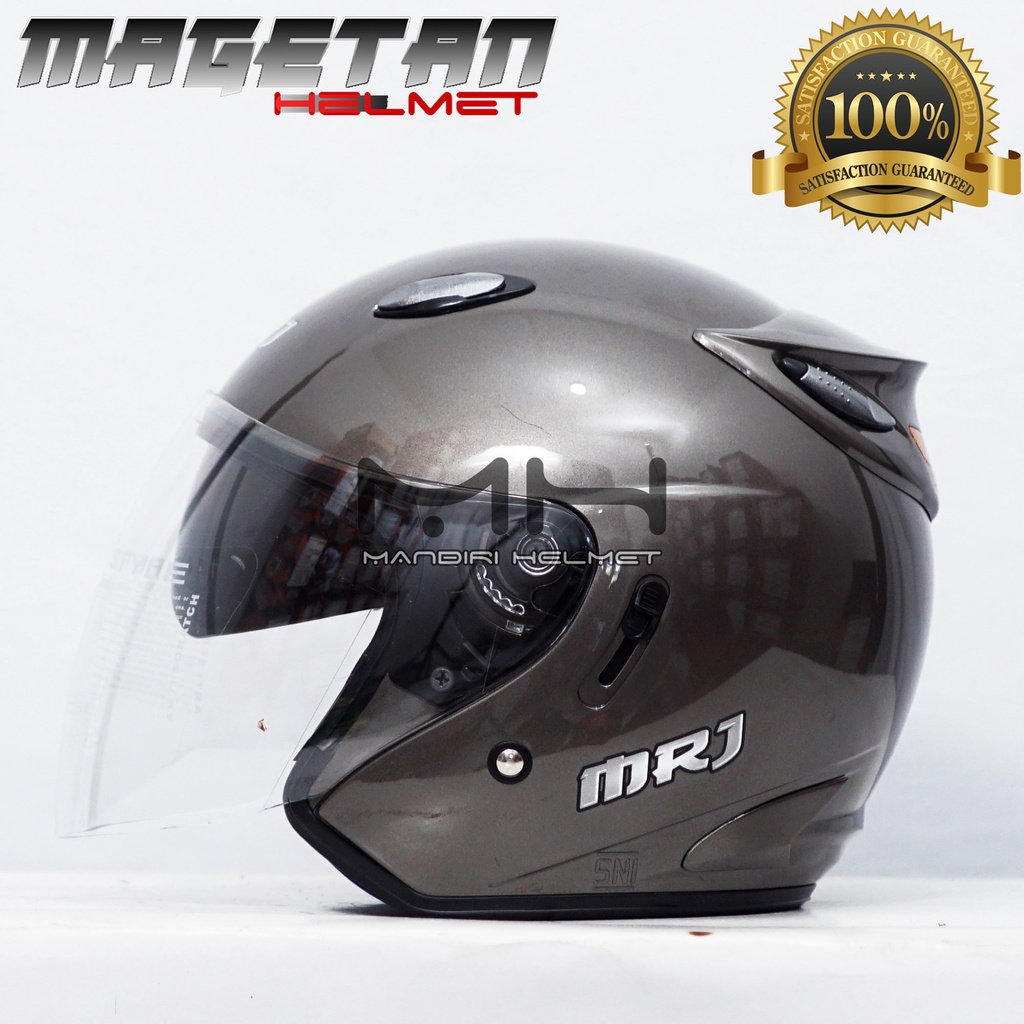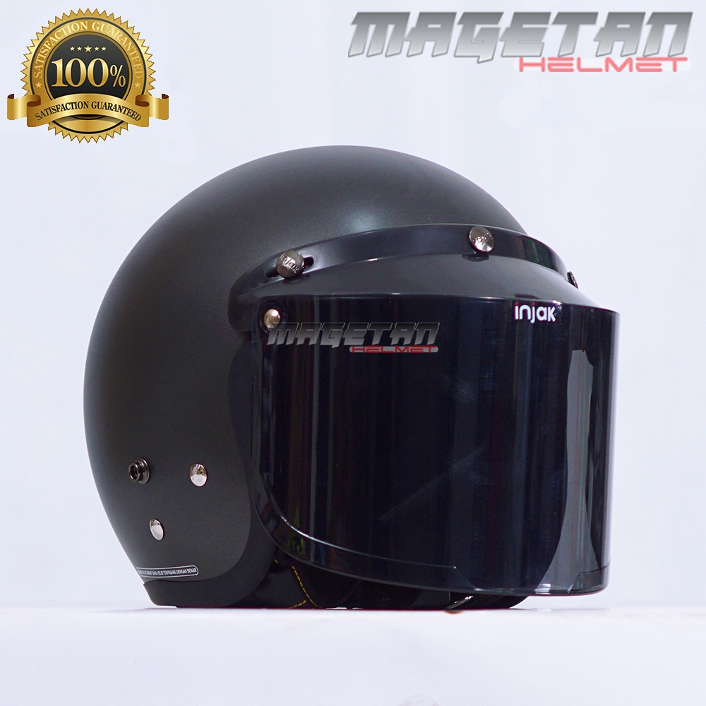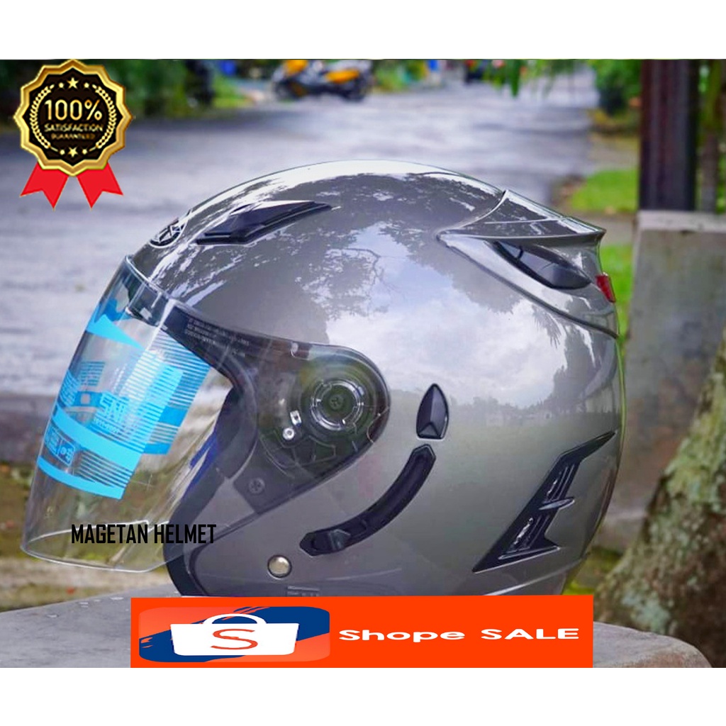 HELM BOGO RETRO DEWASA SNI PRIA WANITA KACA CEMBUNG DATAR FLAT SILVER PELANGI SMOK HITAM GOOGLE