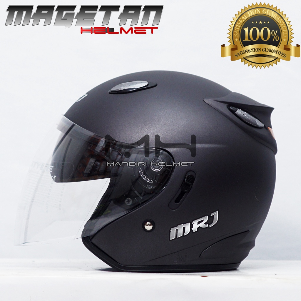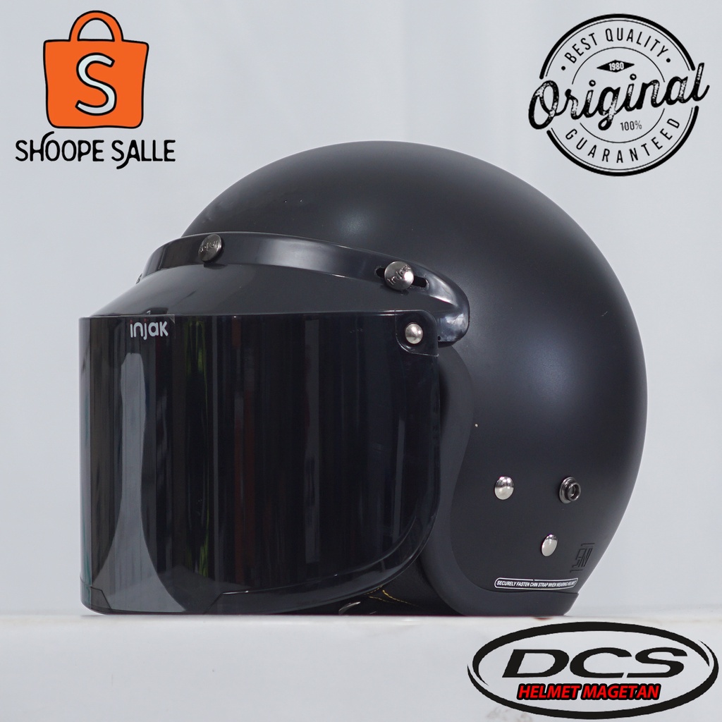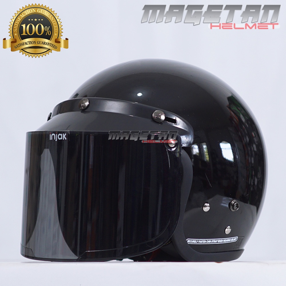 HELM BOGO TULISAN CLASSIC KACA CEMBUNG HITAM DEWASA + DUS