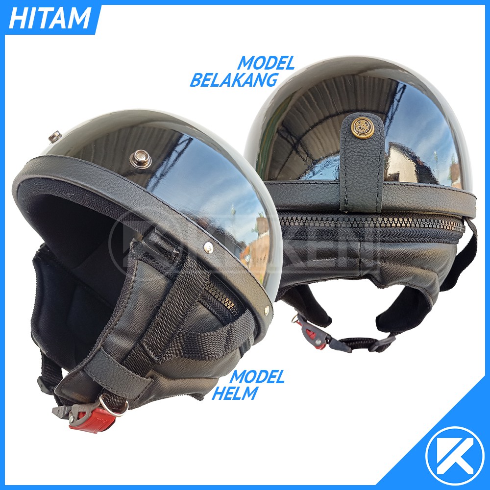 Helm Bogo Full Leher Dewasa Retro Classic Kaca Datar Cembung Original SNI