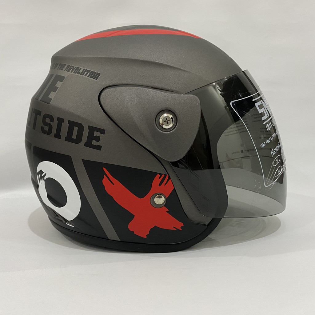 Helm Evo Outside Abu-abu Doff Nuvo Helem SNI Helmet Dewasa Motif - 017