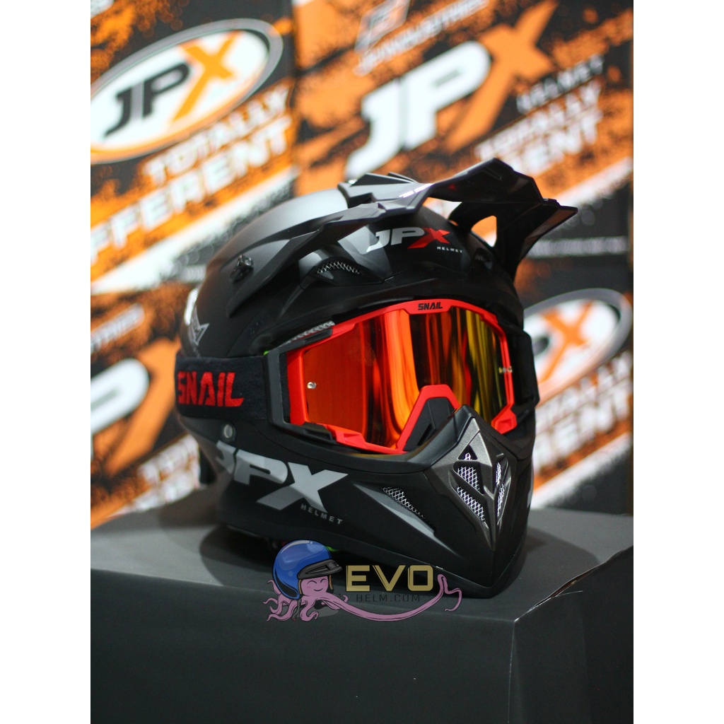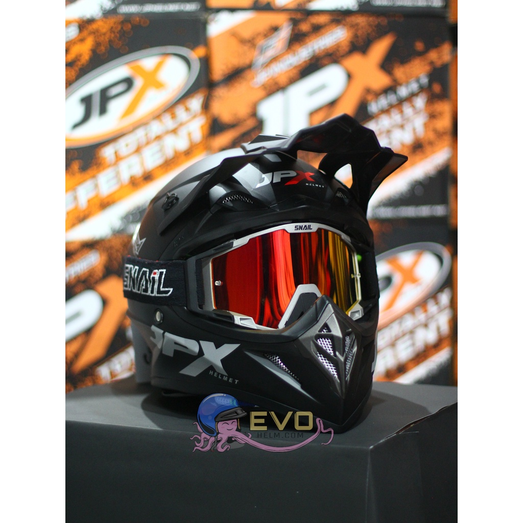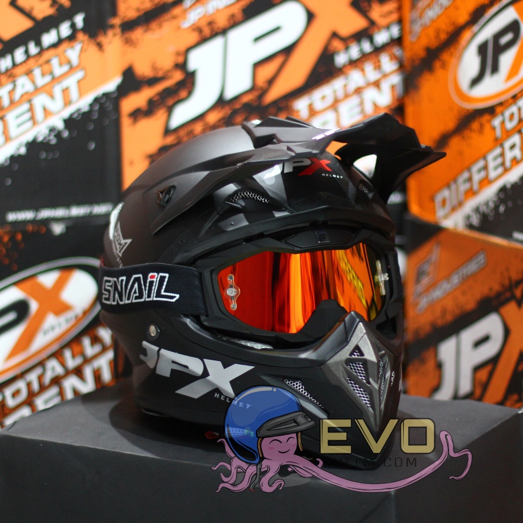 Produk HELM JPX CROSS_SOLID - BLACK DOFF / SILVER + GOOGLE SNAIL (ONGKIR 2 KG) JPX BLACKDOFF HITAM DOP ini harganya adalah Rp. 475.238,00 dan saat ini sedang Diskon 13%, Produk ini sendiri saat saya tulis Artikel ini sudah dilihat sebanyak 63321 kali dan sudah disukai sebanyak 956 kali.