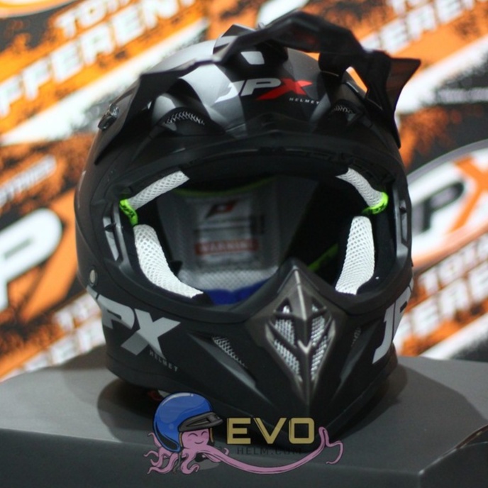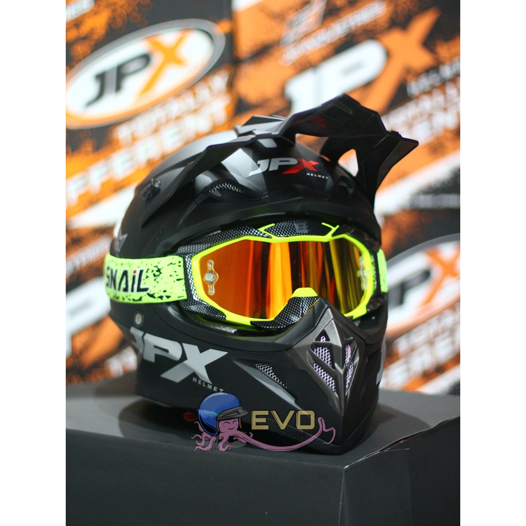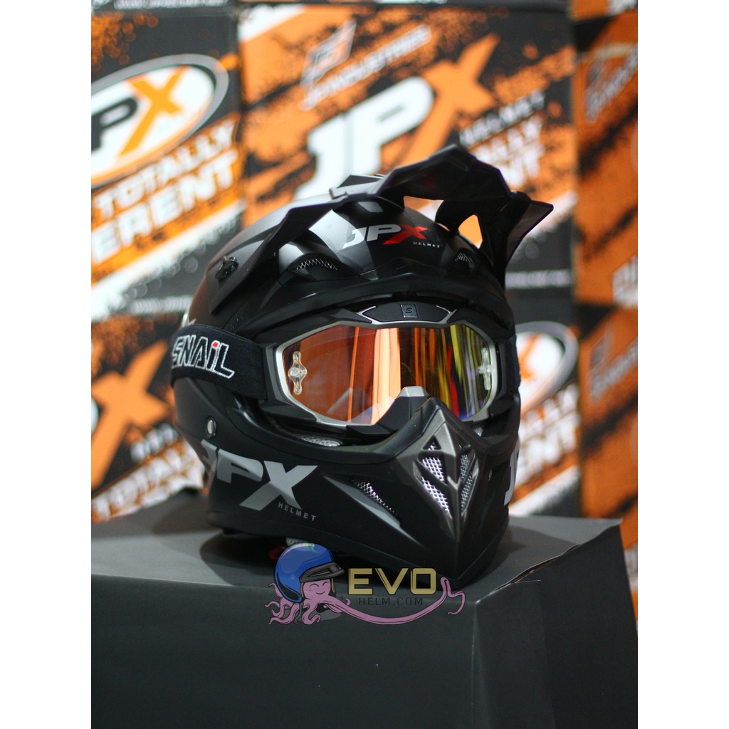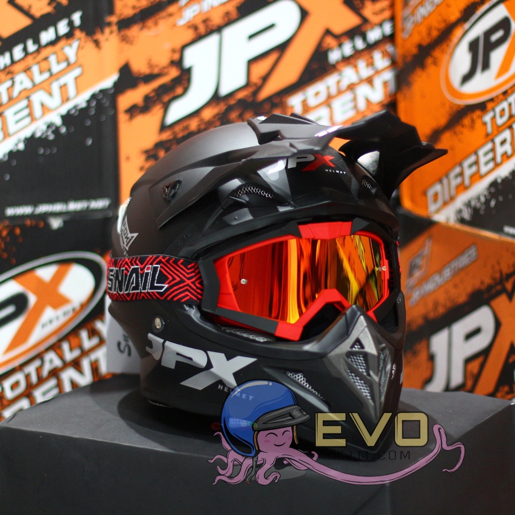 Produk HELM JPX CROSS_SOLID - BLACK DOFF / SILVER + GOOGLE SNAIL (ONGKIR 2 KG) JPX BLACKDOFF HITAM DOP ini harganya adalah Rp. 475.238,00 dan saat ini sedang Diskon 13%, Produk ini sendiri saat saya tulis Artikel ini sudah dilihat sebanyak 63321 kali dan sudah disukai sebanyak 956 kali.