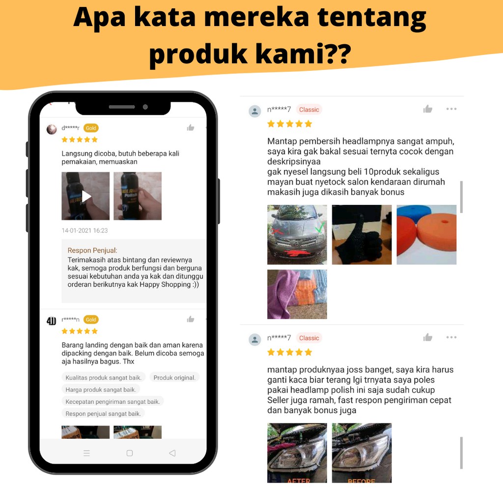 - Produk ini tidak sedang Flash Sale, tidak semua Seller suka Flash Sale, saya rasa ini bukan kekurangan, Jika Anda anggap Harga Rp. 133.000,00 itu murah untuk Pembersih Lampu Mobil Nano Ceramic Coating Penghilang Jamur Kaca Waterspot Remover ya ambil saja