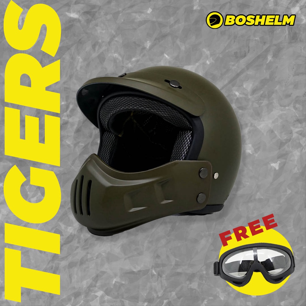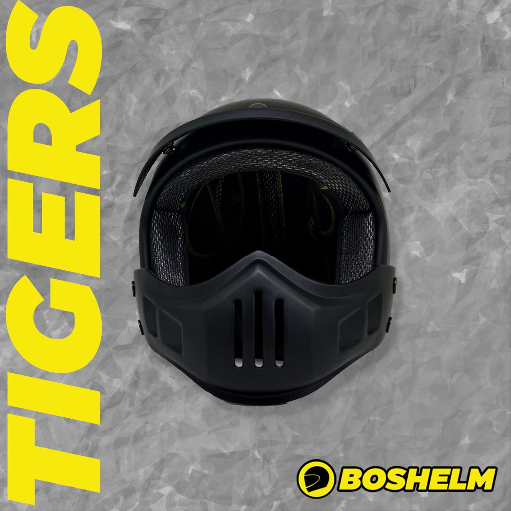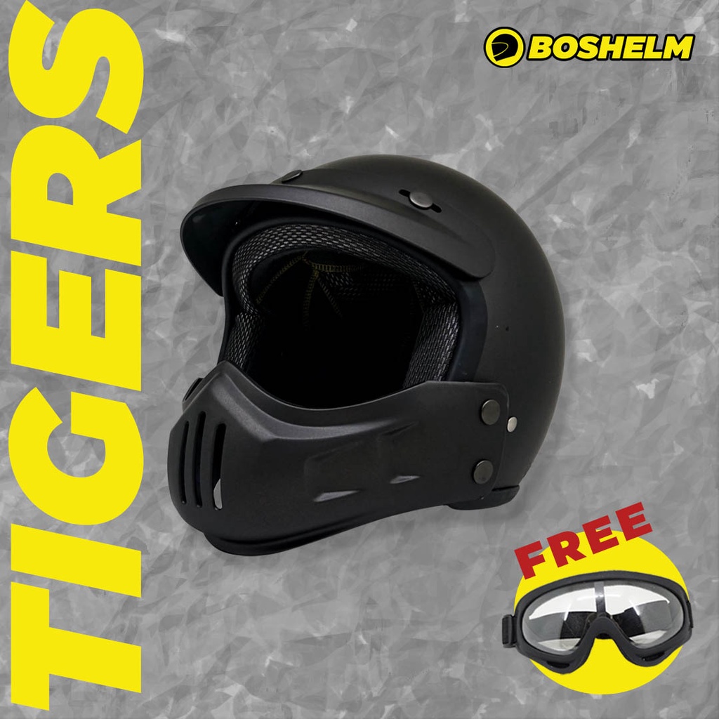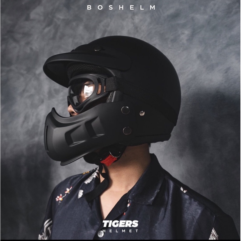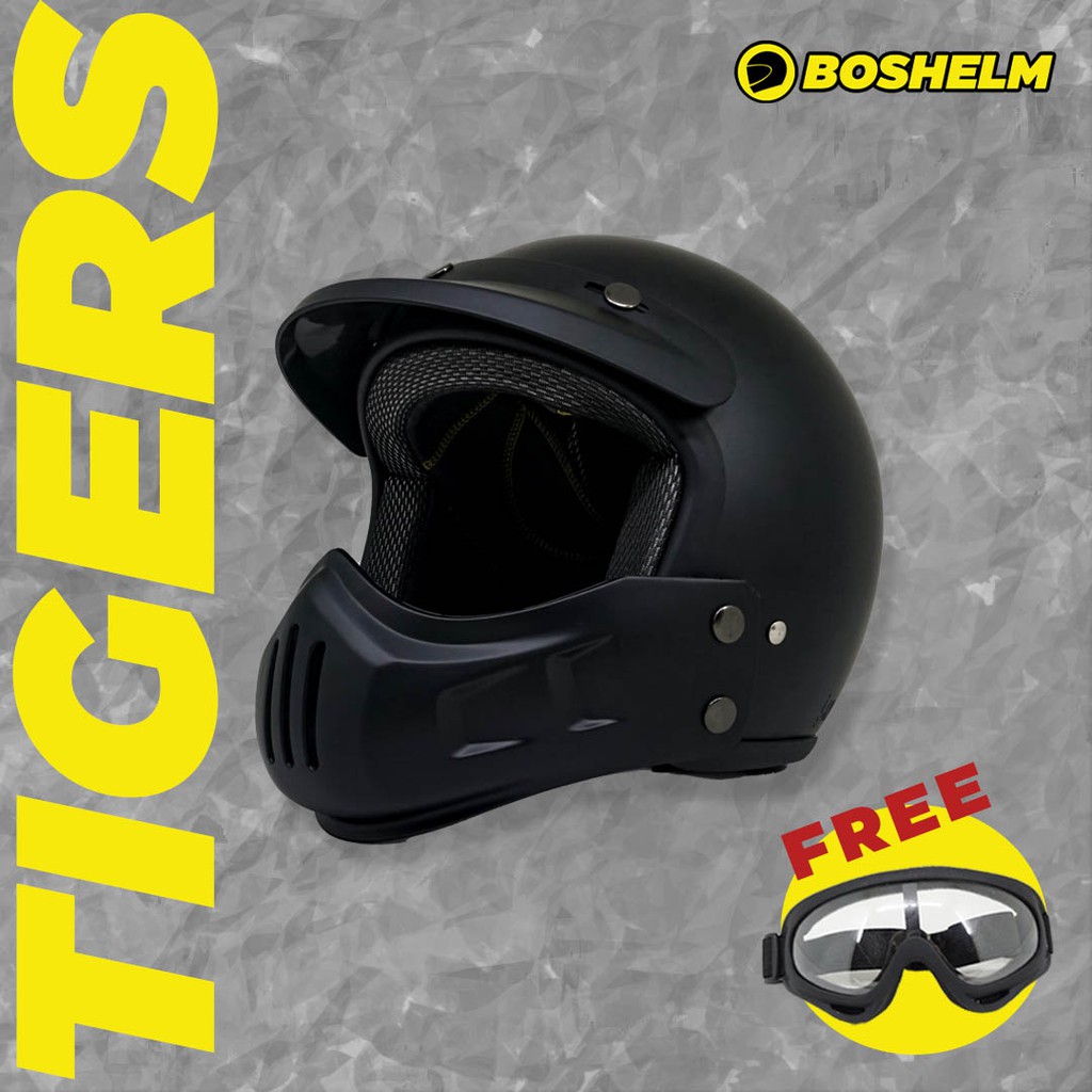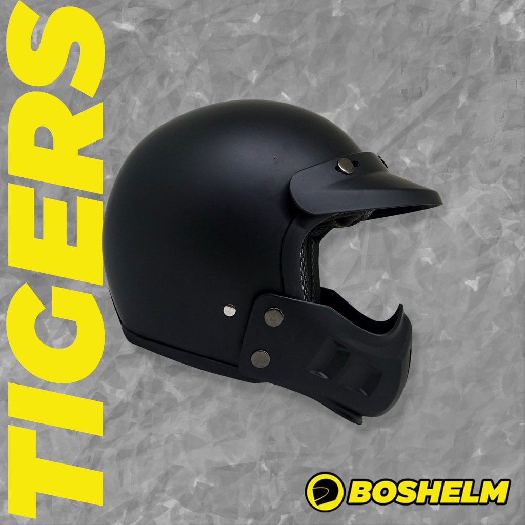 BOSHELM Helm Cakil Modular Tigers Hitam Doff Helm Retro SNI