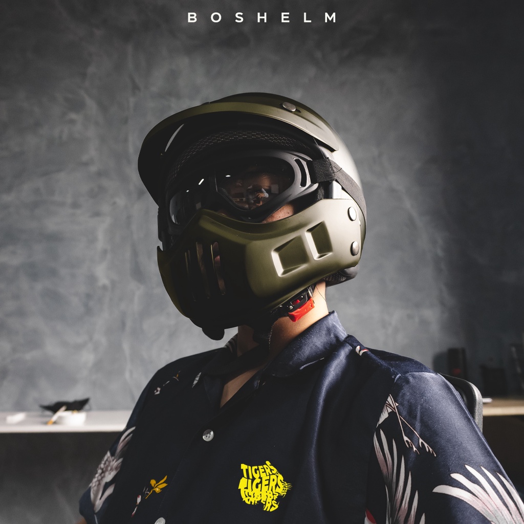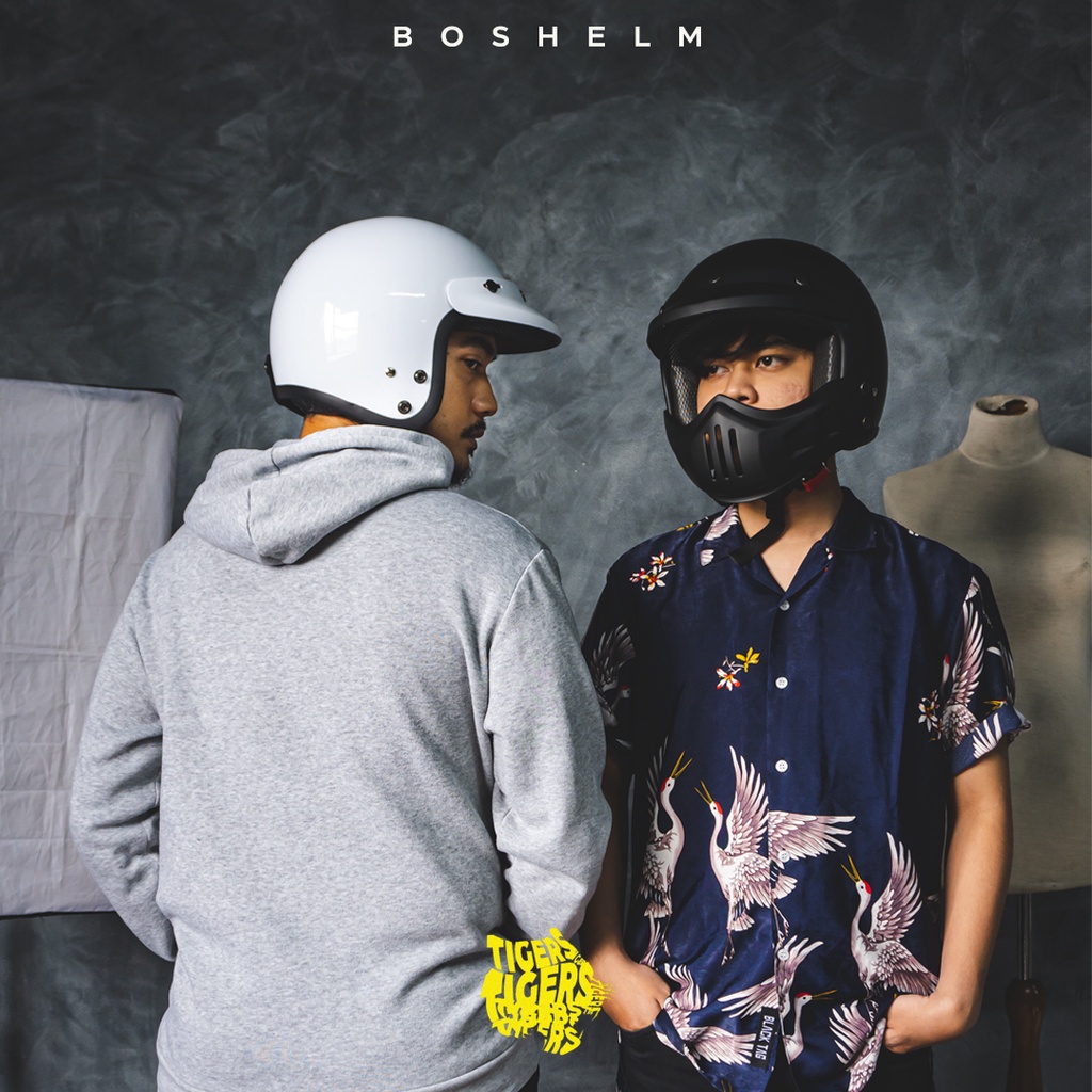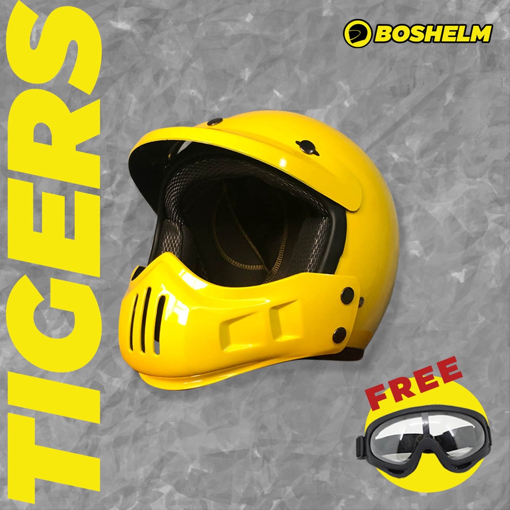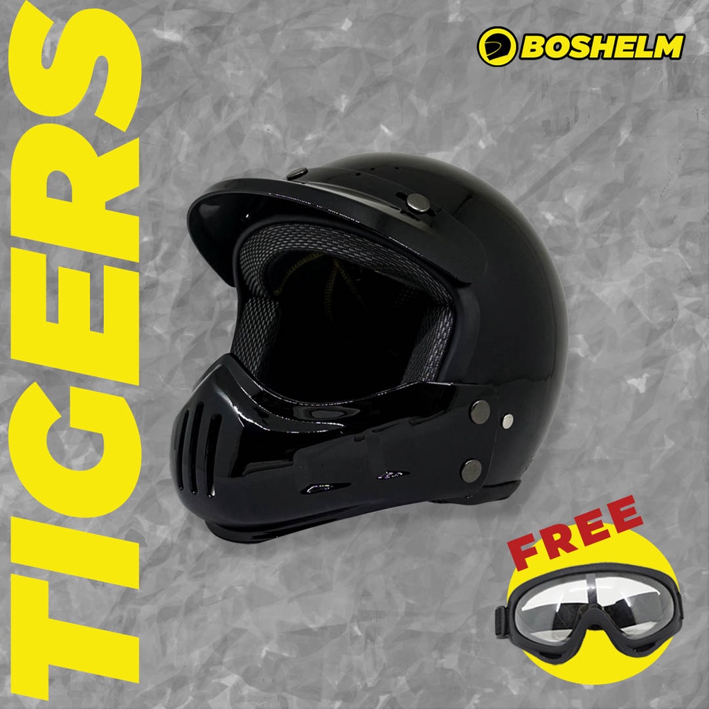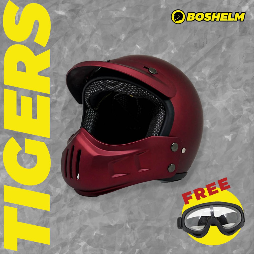 BOSHELM Helm Cakil Modular Tigers Hitam Doff Helm Retro SNI