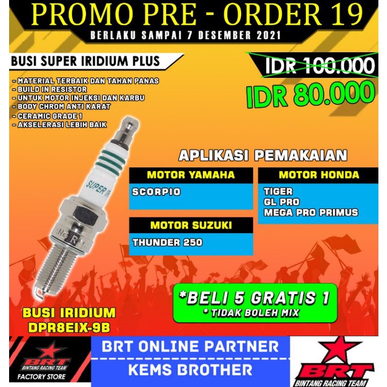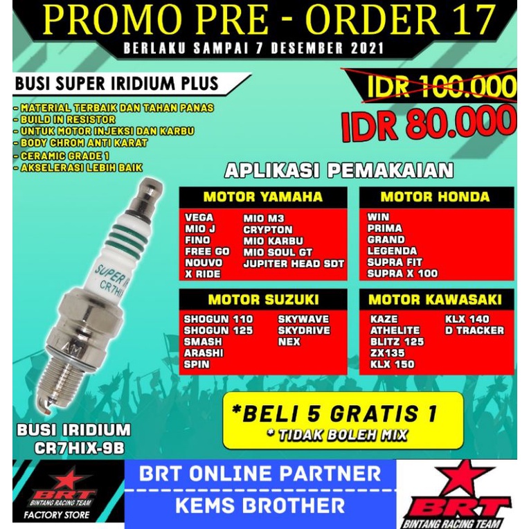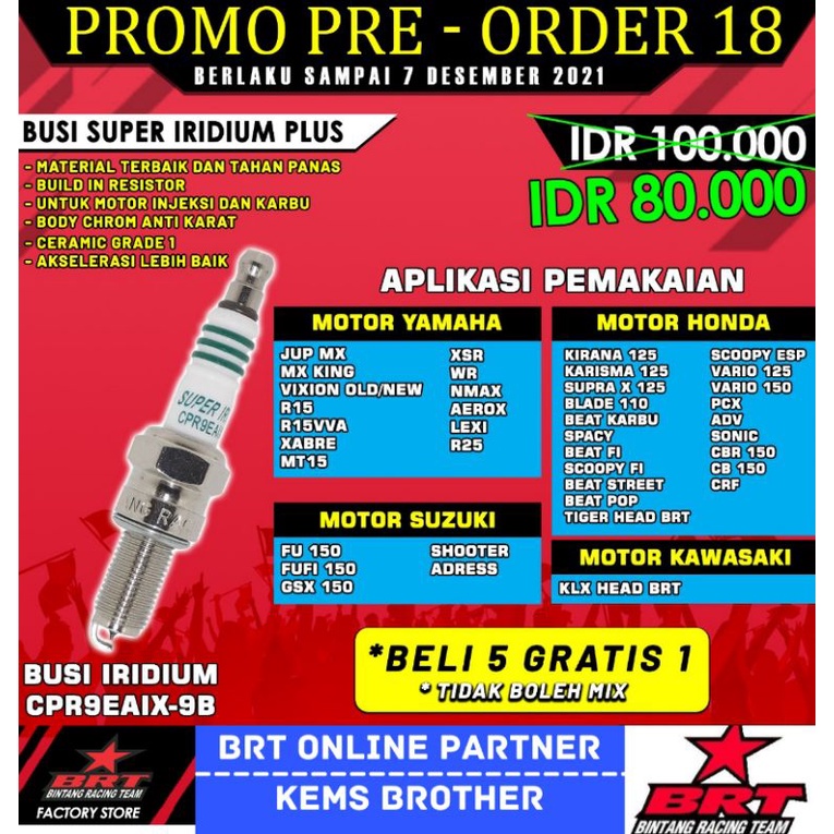 BUSI RACING BRT SUPER IRIDIUM PLUS KLX CRF VIXION BEAT POP BEAT ESP MX KING MIO SPORTY R15 JUPITER VEGA R SATRIA FU GSX