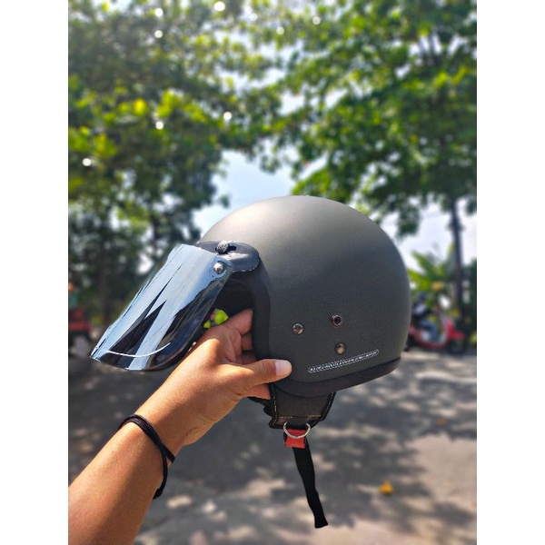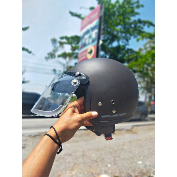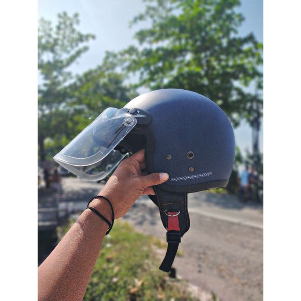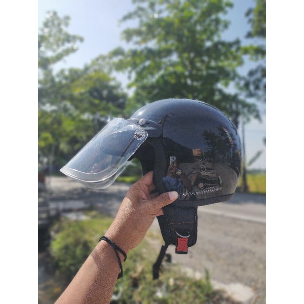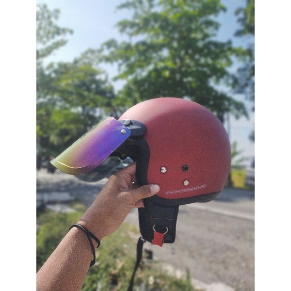 Helm Bogo Retro Dewasa SNI List Classic Polos Kaca Cembung Full Leher