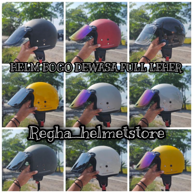 Kekurangan - Kekurangan membeli (FREE BOX) HELM BOGO DEWASA FULL LEHER KACA DATAR SNI | NO1 di Toko ini