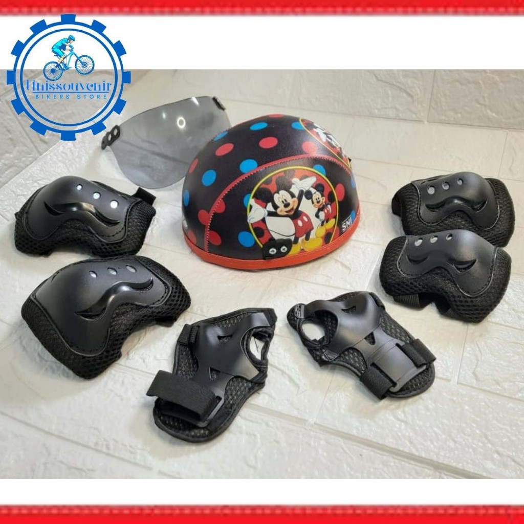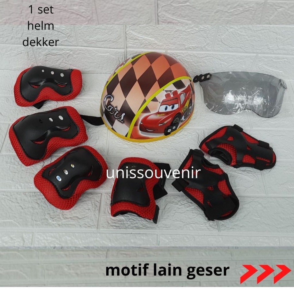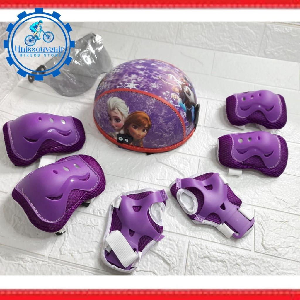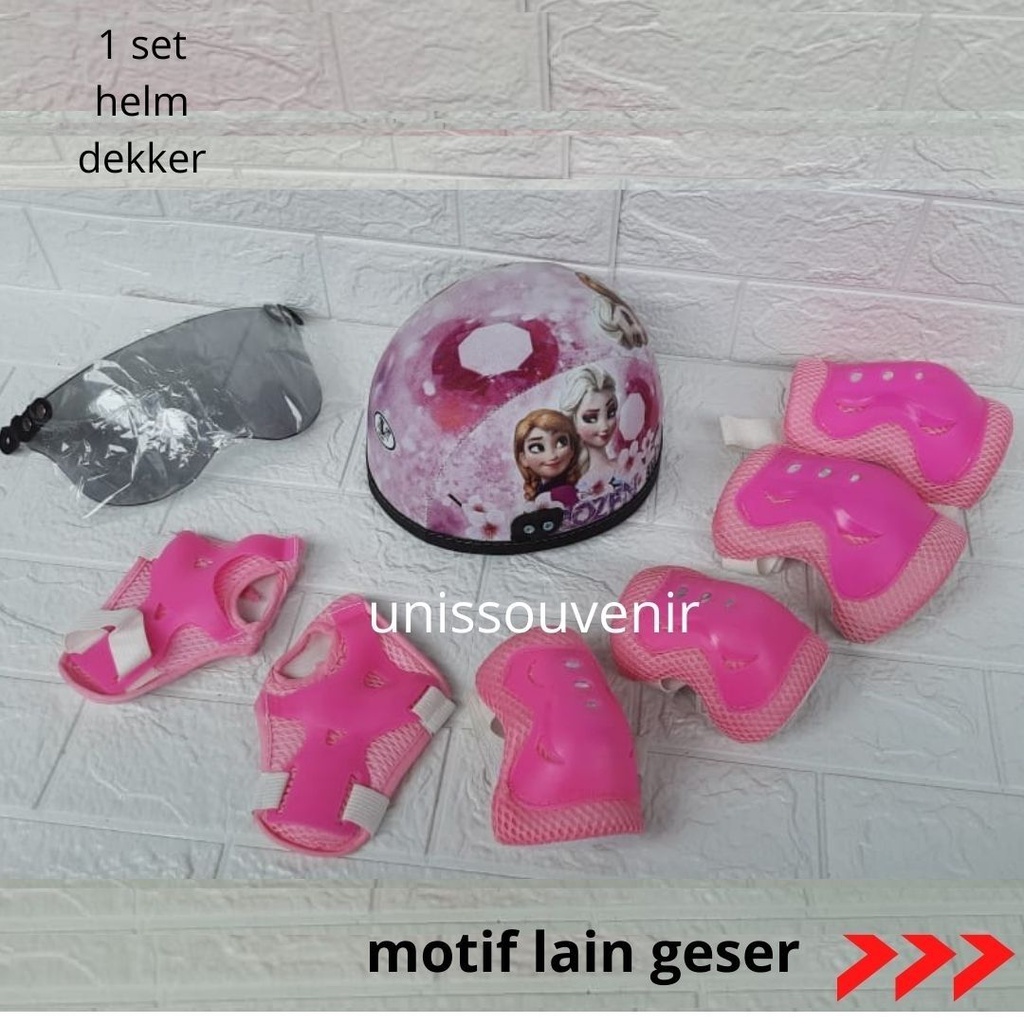 HELM ANAK KARAKTER PRINTING UNIK LENGKAP DENGAN PELINDUNG LUTUT DAN SIKU
