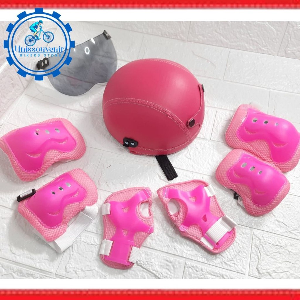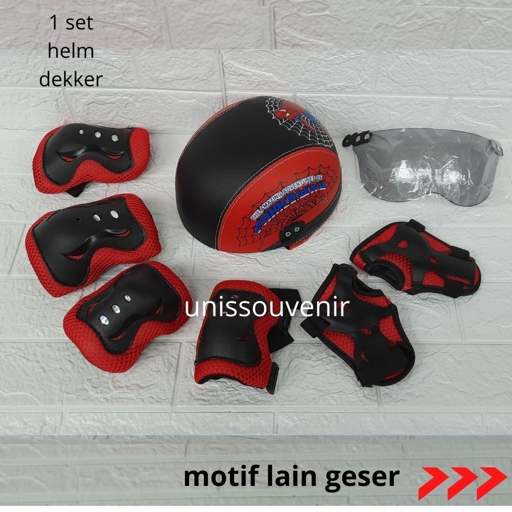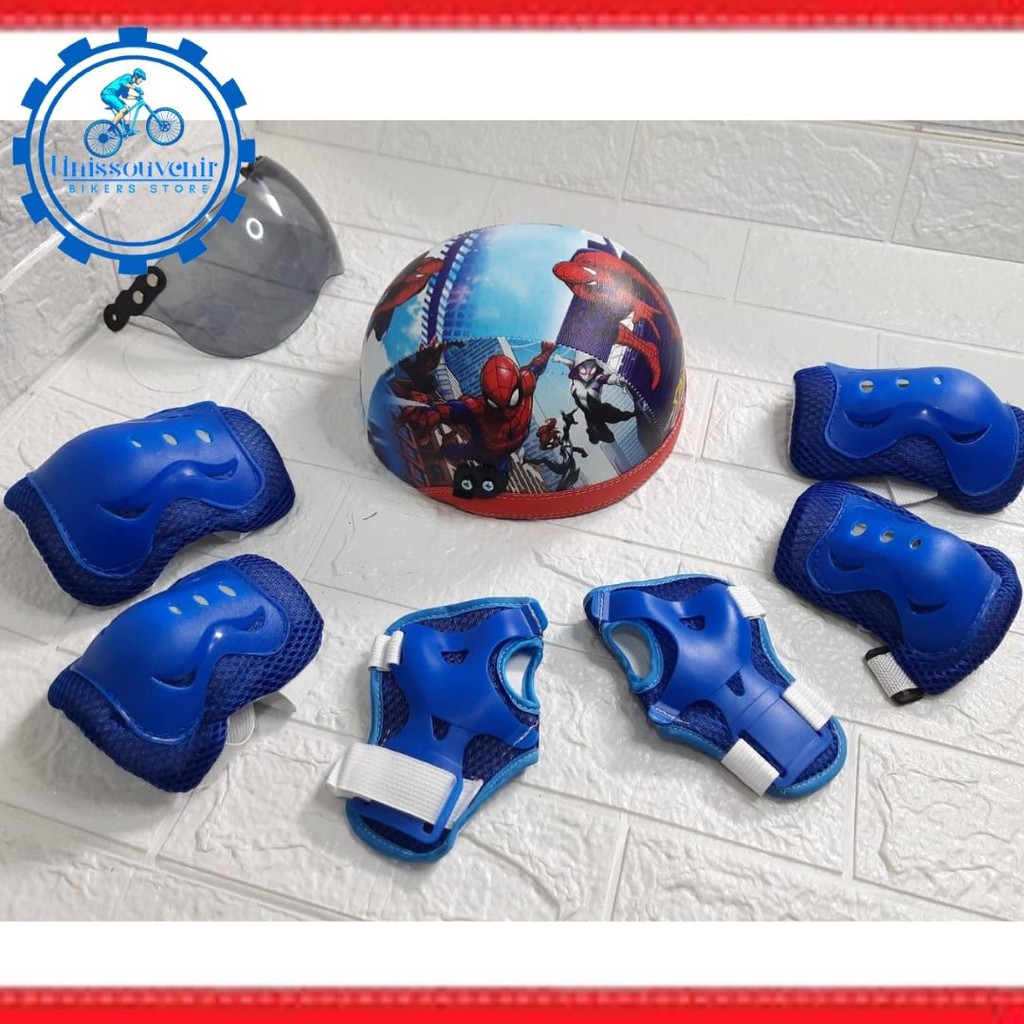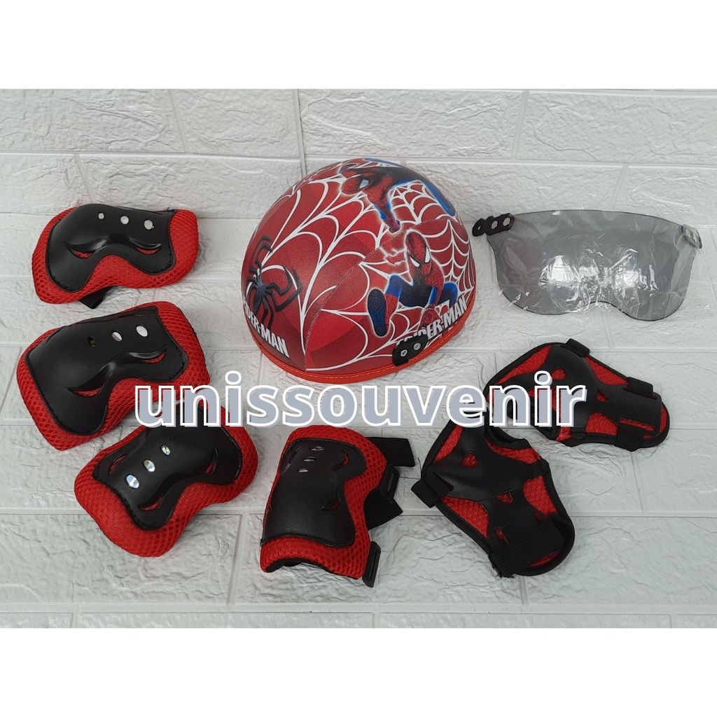 HELM ANAK KARAKTER PRINTING UNIK LENGKAP DENGAN PELINDUNG LUTUT DAN SIKU