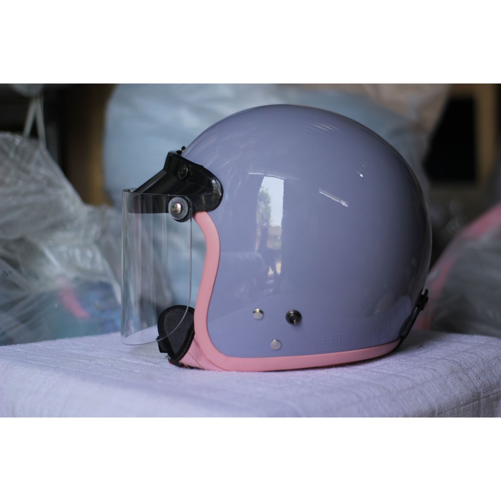 HELM BOGO CAMELIA PASTEL DEWASA KACA DATAR BENING