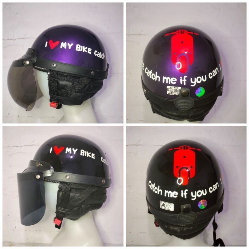 Alasan kenapa harus beli Helm Bogo Chips dewasa / helm Vespa Premium I Love My bike / Helm Bogo setengah sekarang
