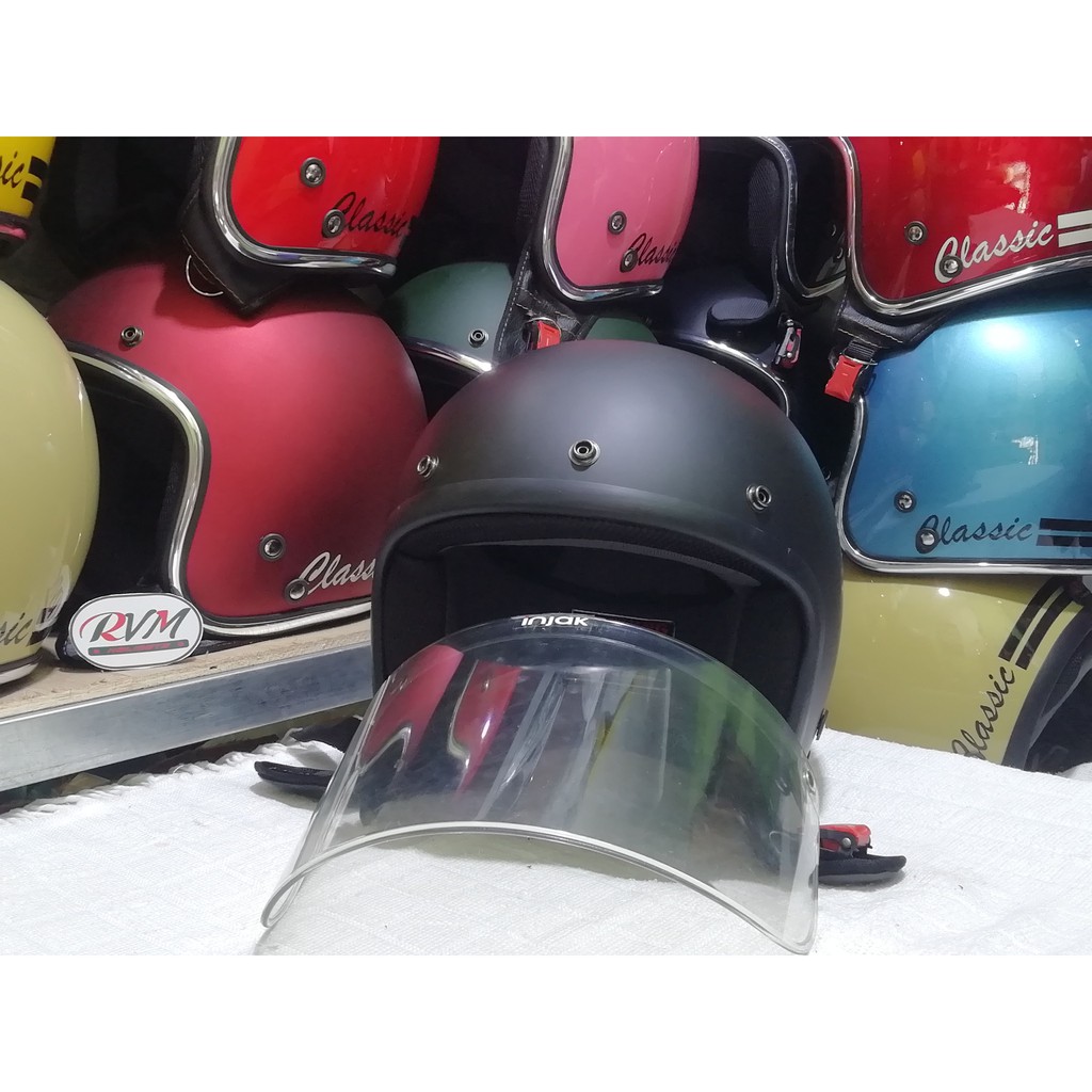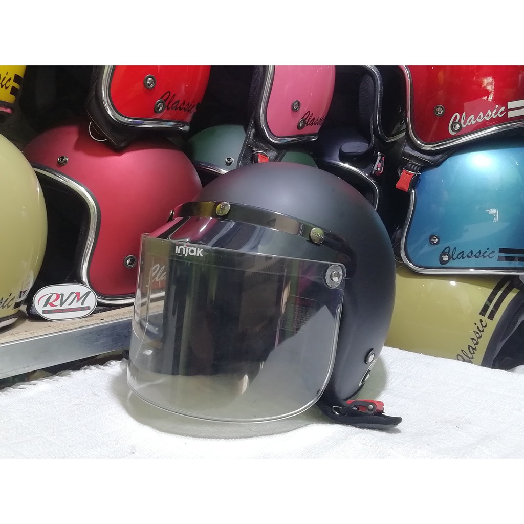 HELM BOGO CLASSIC DEWASA HITAM DOFF KACA DATAR BENING