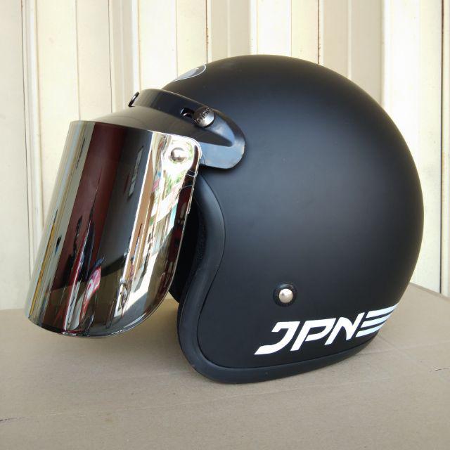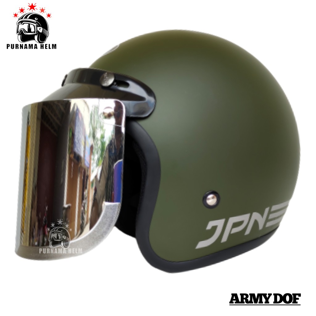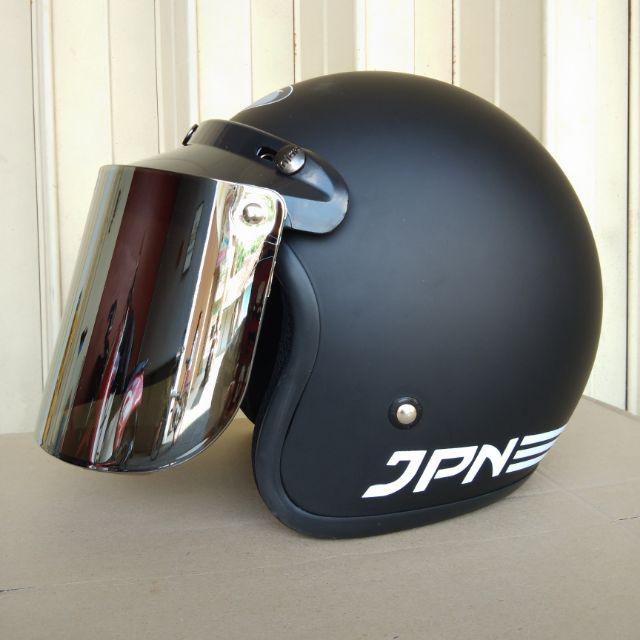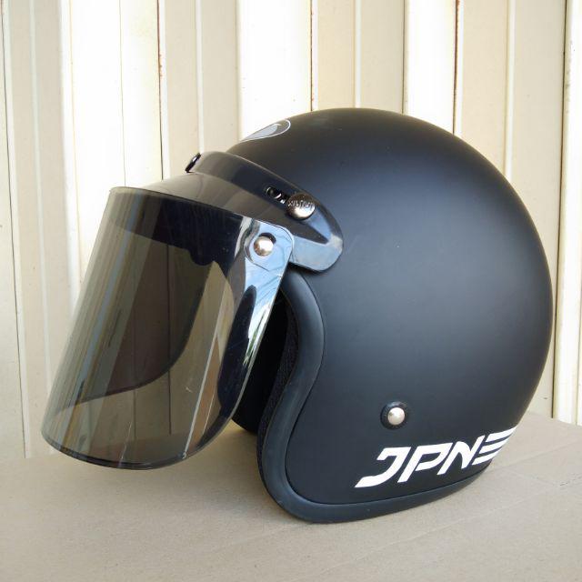 Helm bogo jpn retro arc Hitam Doff kaca flat visor
