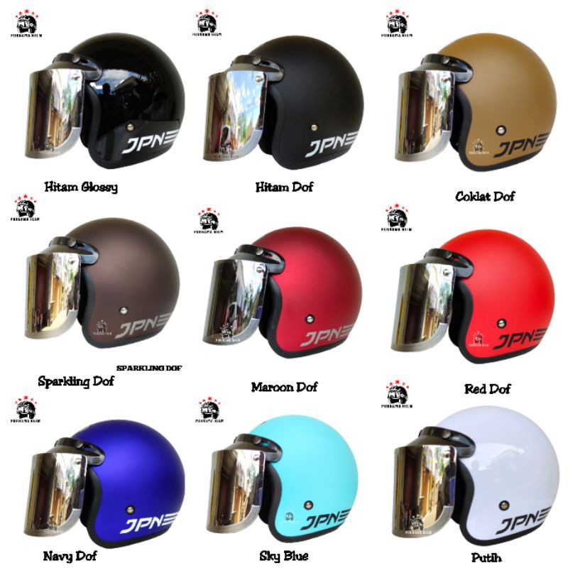 Rifan Juga punya 4 Produk lain terkait Produk Helm Bogo Dewasa Helm JPN ORI jpn garis helm polos helm cowok/cewek helm plus kaca datar sni yang perlu Anda lirik karena menarik, Produk itu adalah....