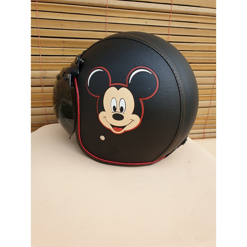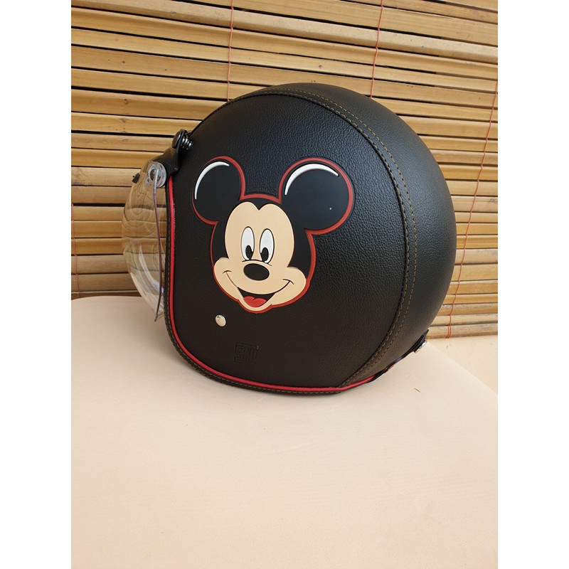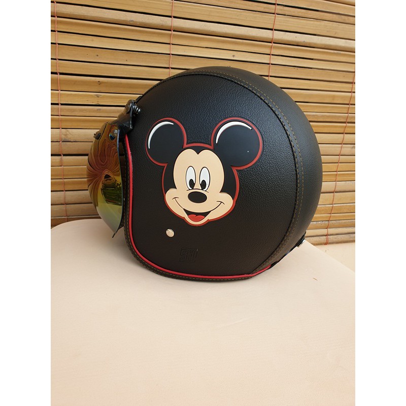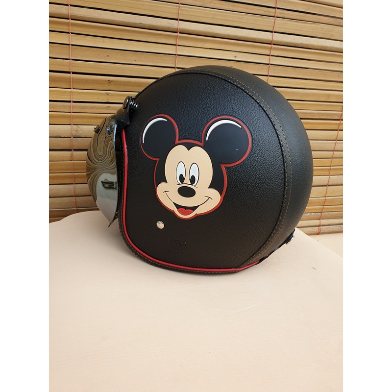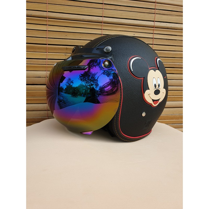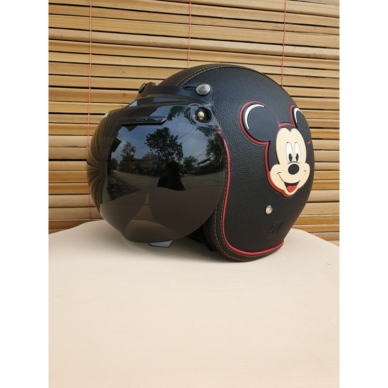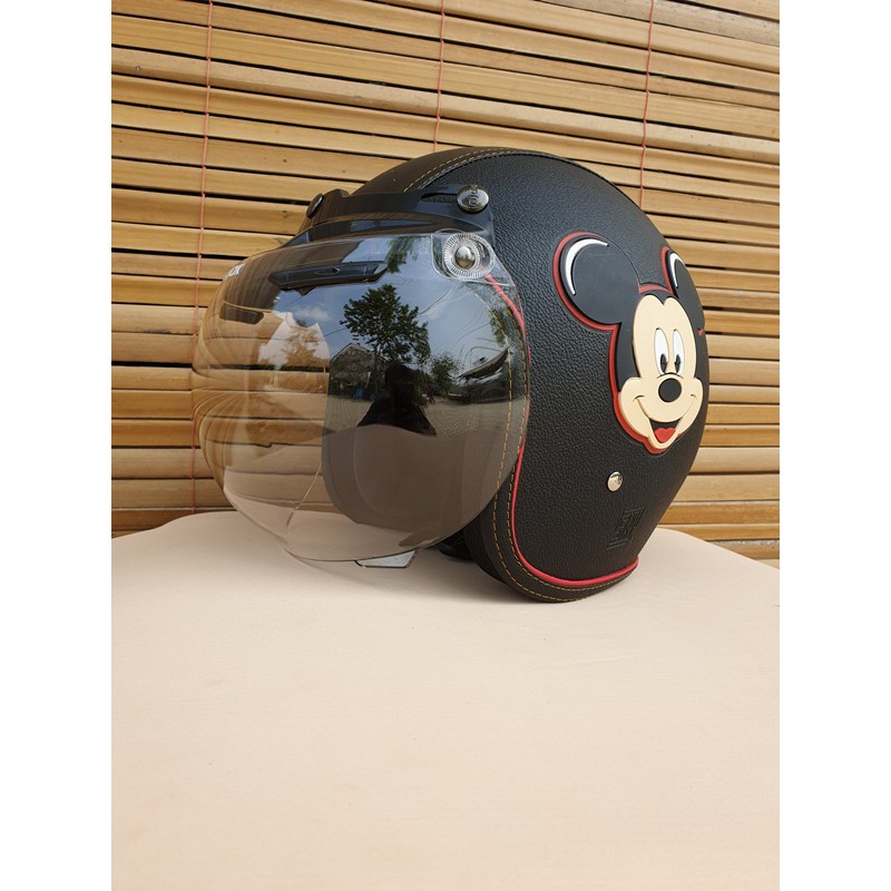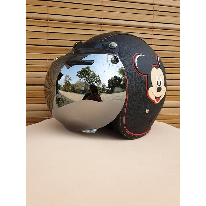 Helm Bogo Retro Kulit Dewasa Kaca Bogo Original Motif Mickey Mouse TPR Merah