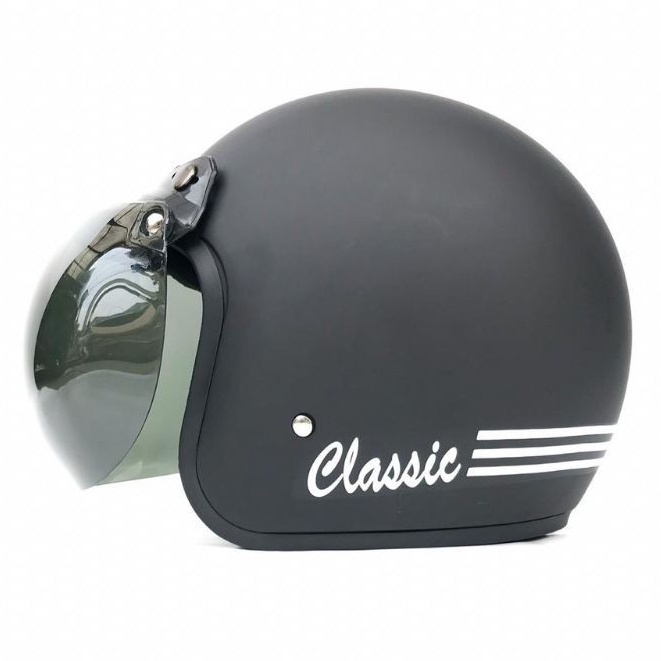 helm bogo polos list crome kaca datar flat injak dewasa sni retro