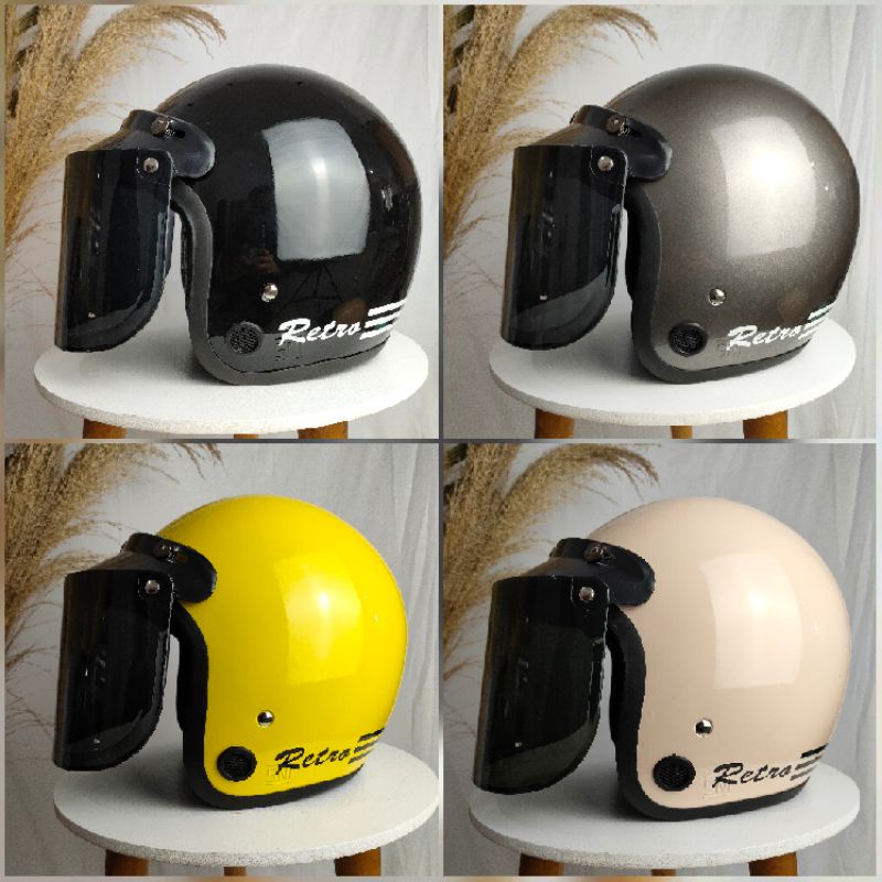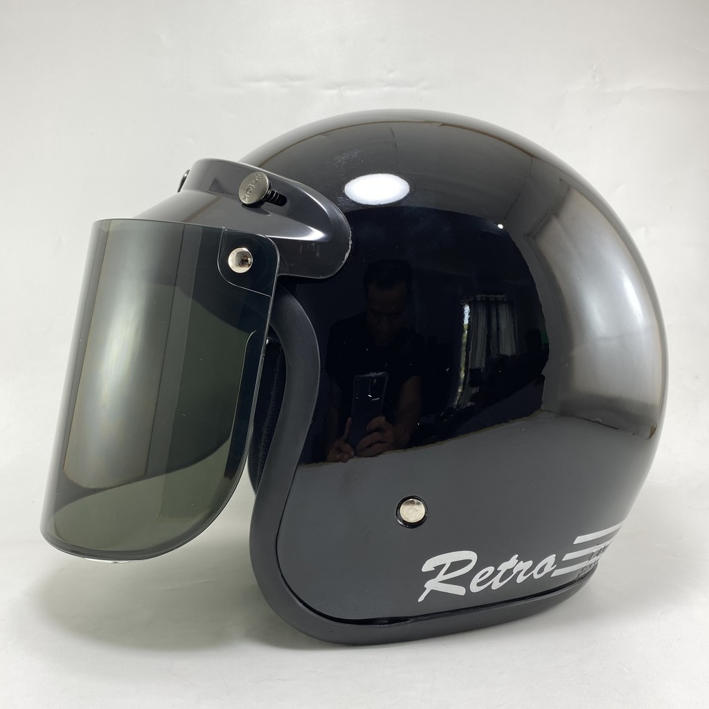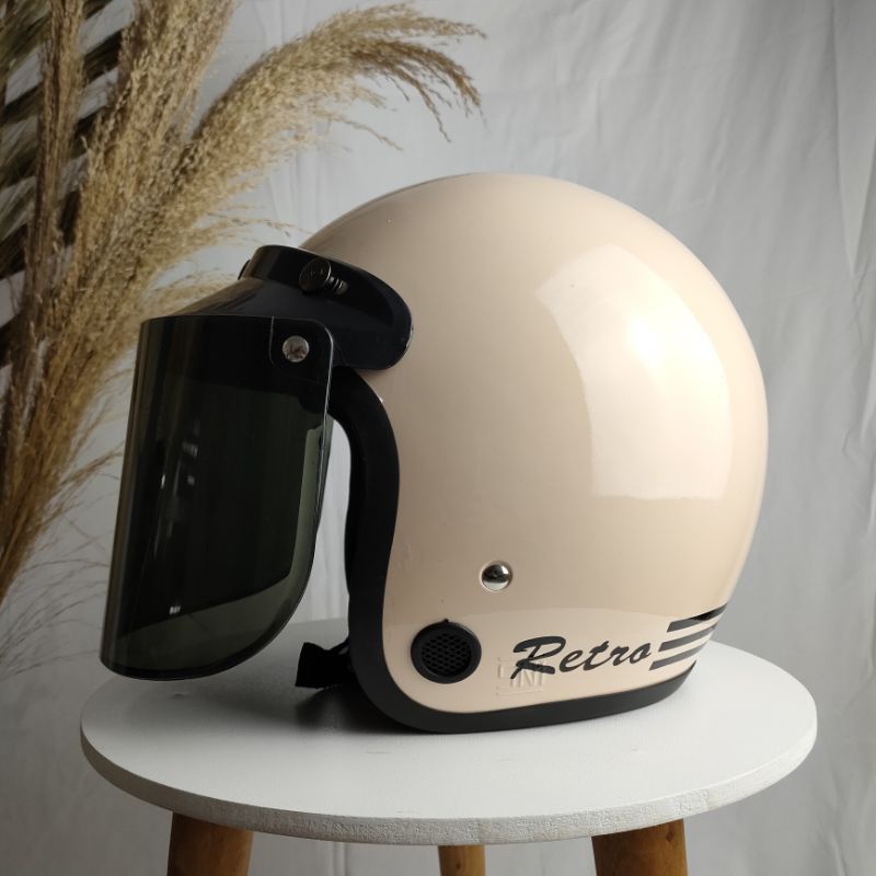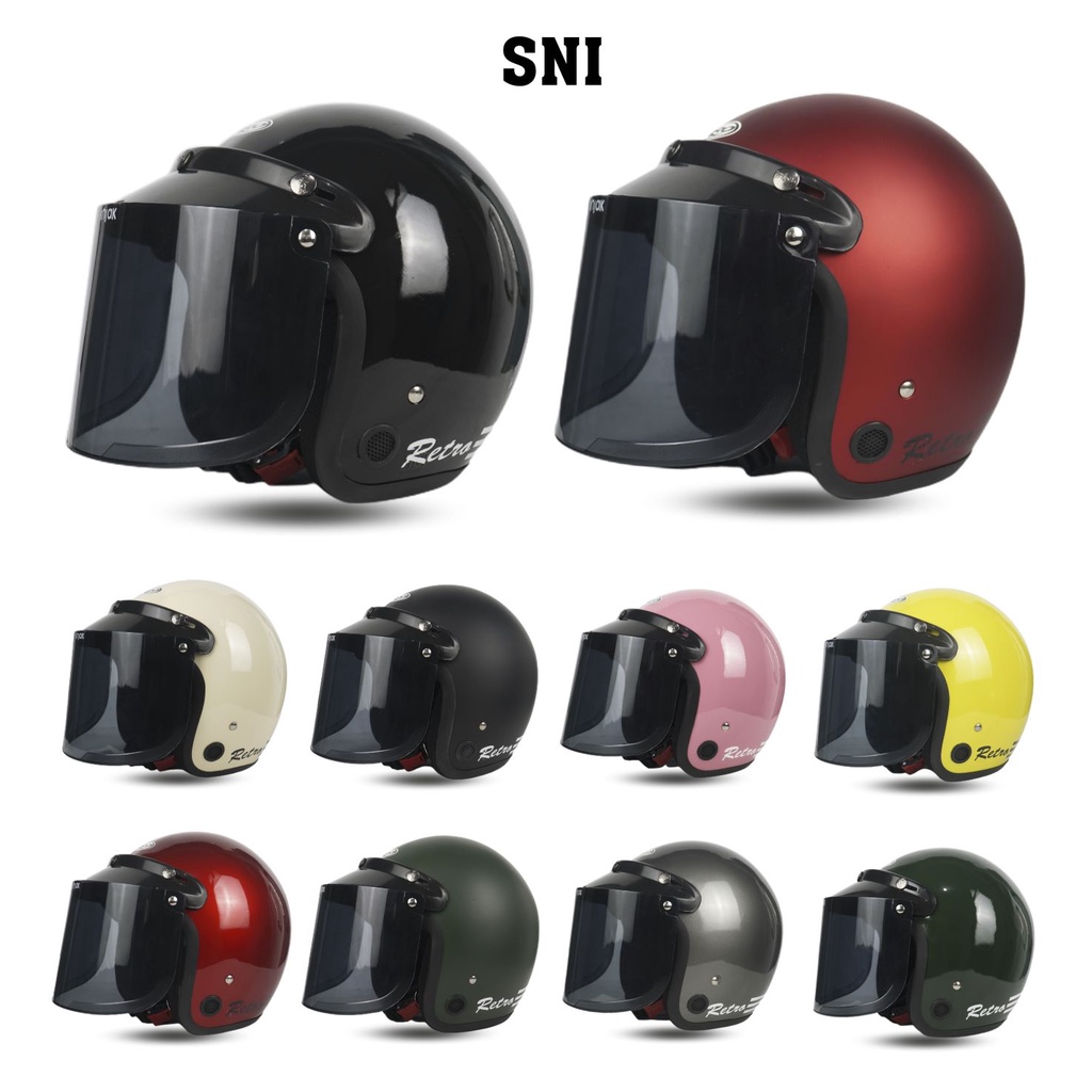 Helm Bogo Retro Bayklasik Putih Glosy Polos Kaca Bogo Original Cembung Hitam Smoke standart SNI