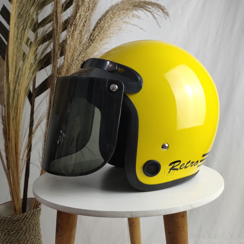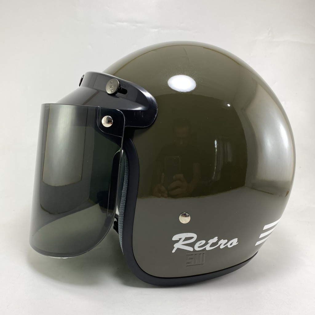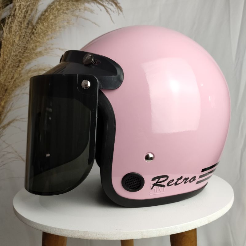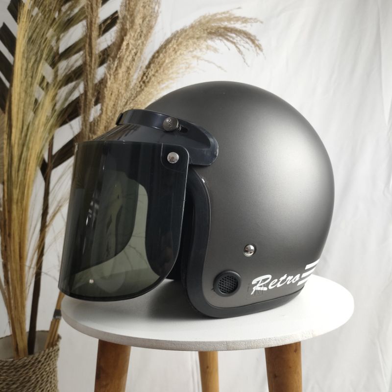 Helm Bogo Retro Bayklasik Putih Glosy Polos Kaca Bogo Original Cembung Hitam Smoke standart SNI