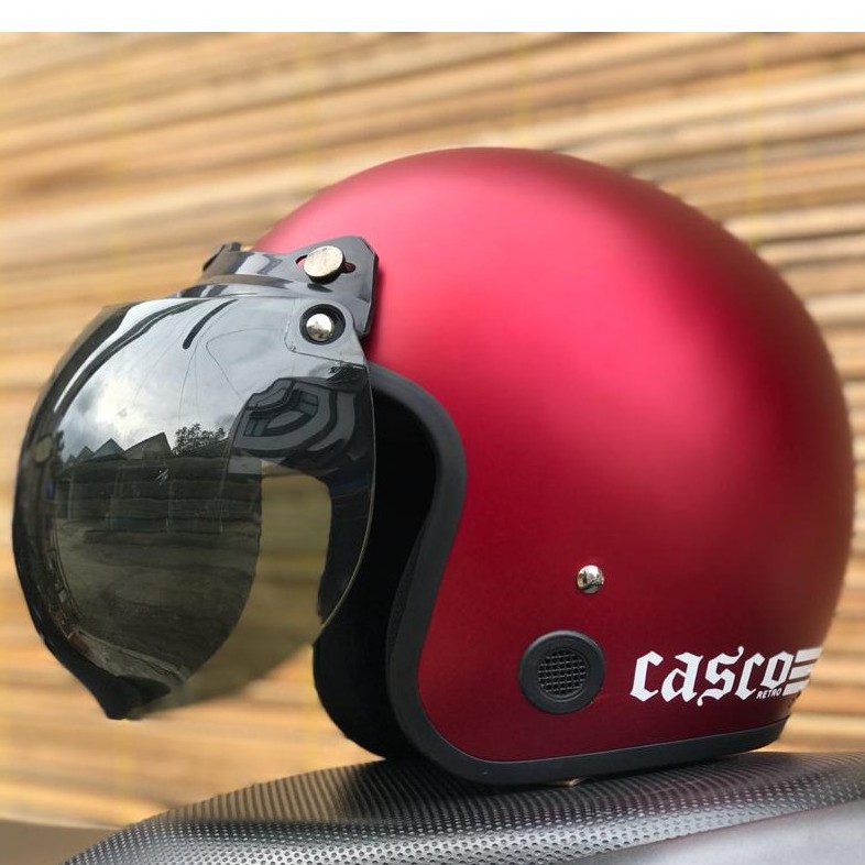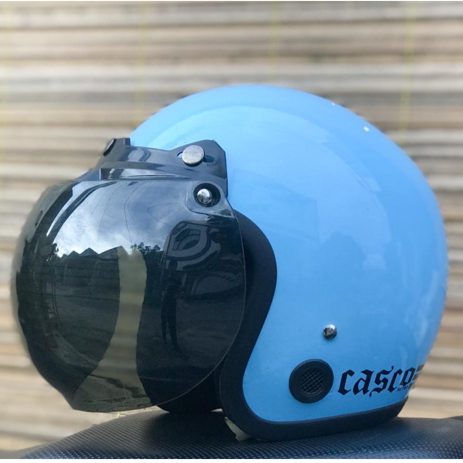 helm bogo dewasa classik garis tiga kaca cembung sni murah polos kaca datar flat