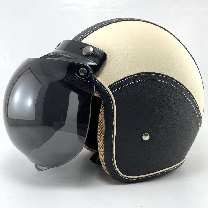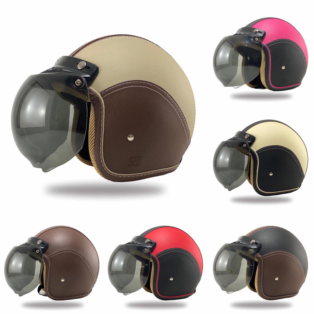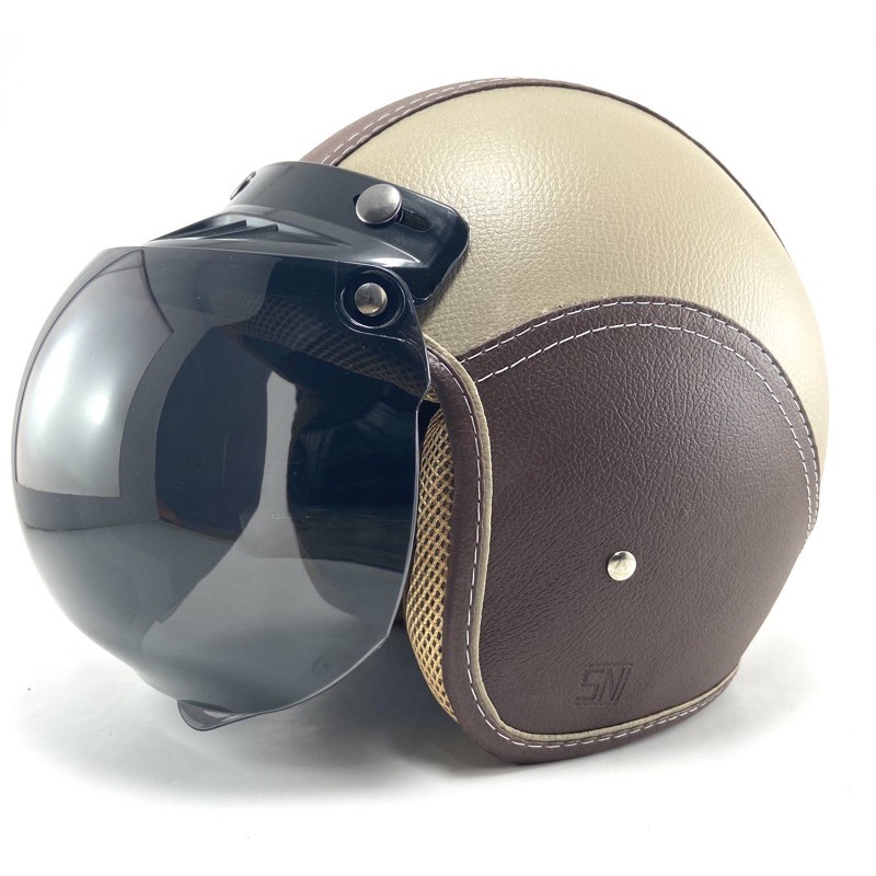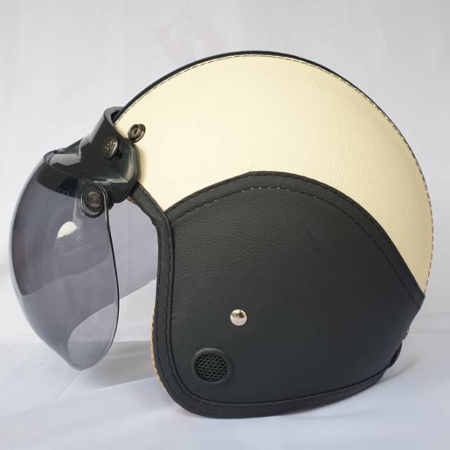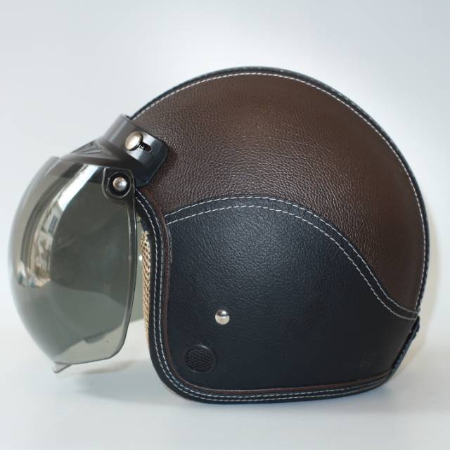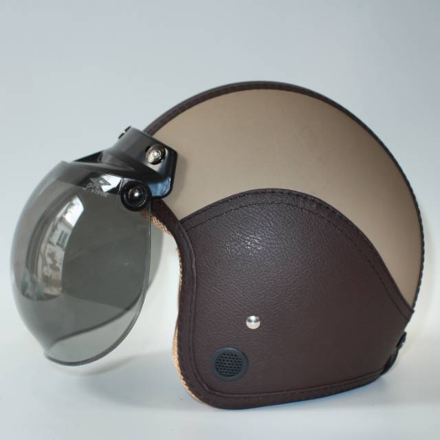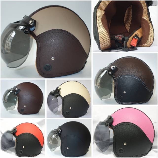 COD Helm bogo polos dewasa helm bogo retro helm bogo classic full leher +kaca datar smoke