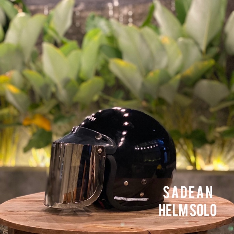 Helm Bogo retro polos dewasa list Crome chrome chroom chroome Hitam SNI murah