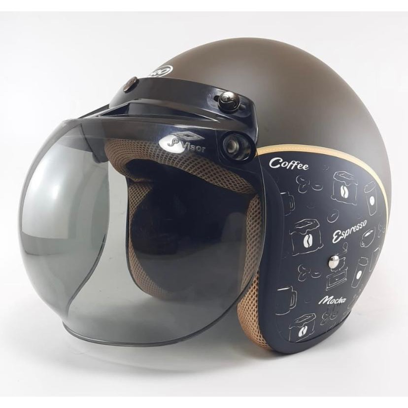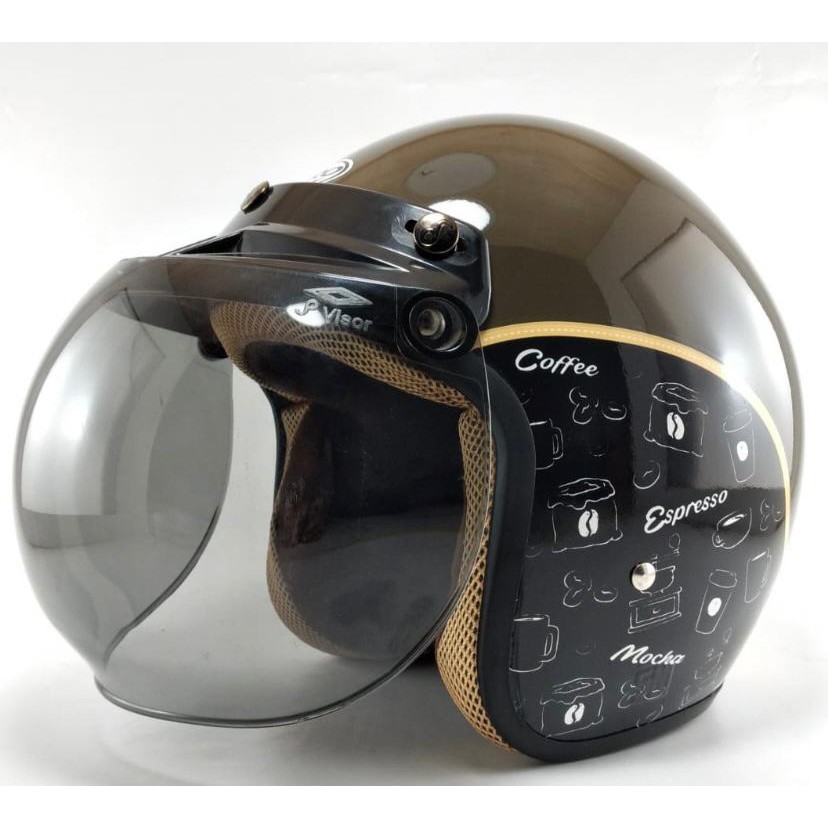 Helm Bogo Retro Motif Coffee Kopi Dewasa SNI