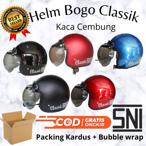 Helm Bogo classic helm bogo classik garis tiga kaca datar kaca cembung dewasa pria wanita hijab sni murah polos full leher helem bogo helem bogo classik helm motor terlaris helm half face cowo cewek helm retro promo