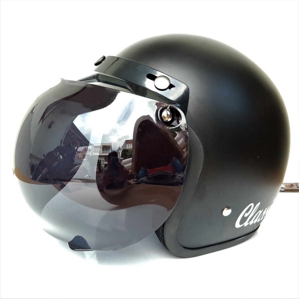 HELM BOGO TULISAN CLASSIC KACA CEMBUNG HITAM DEWASA + DUS